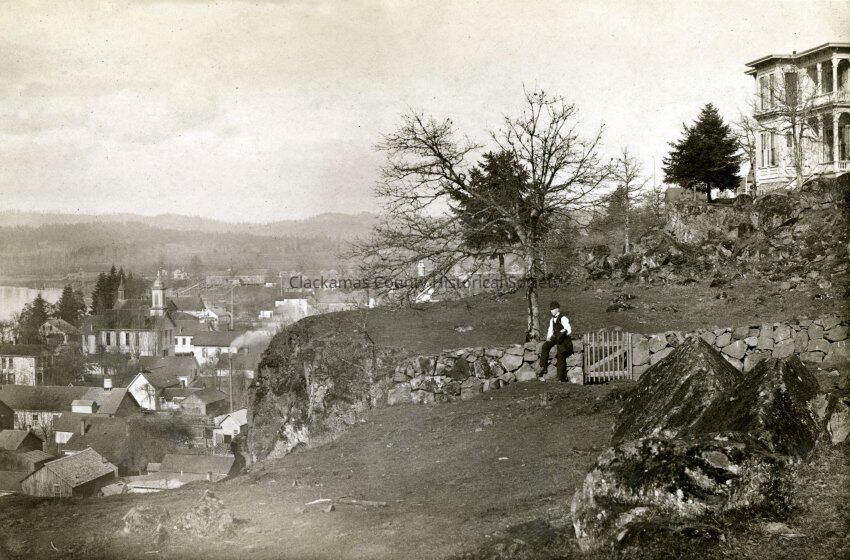 Oregon City from the Bluff at 6th with the Chase House. Photo was taken in 1888 before the tower was added to the Chase House in 1892.