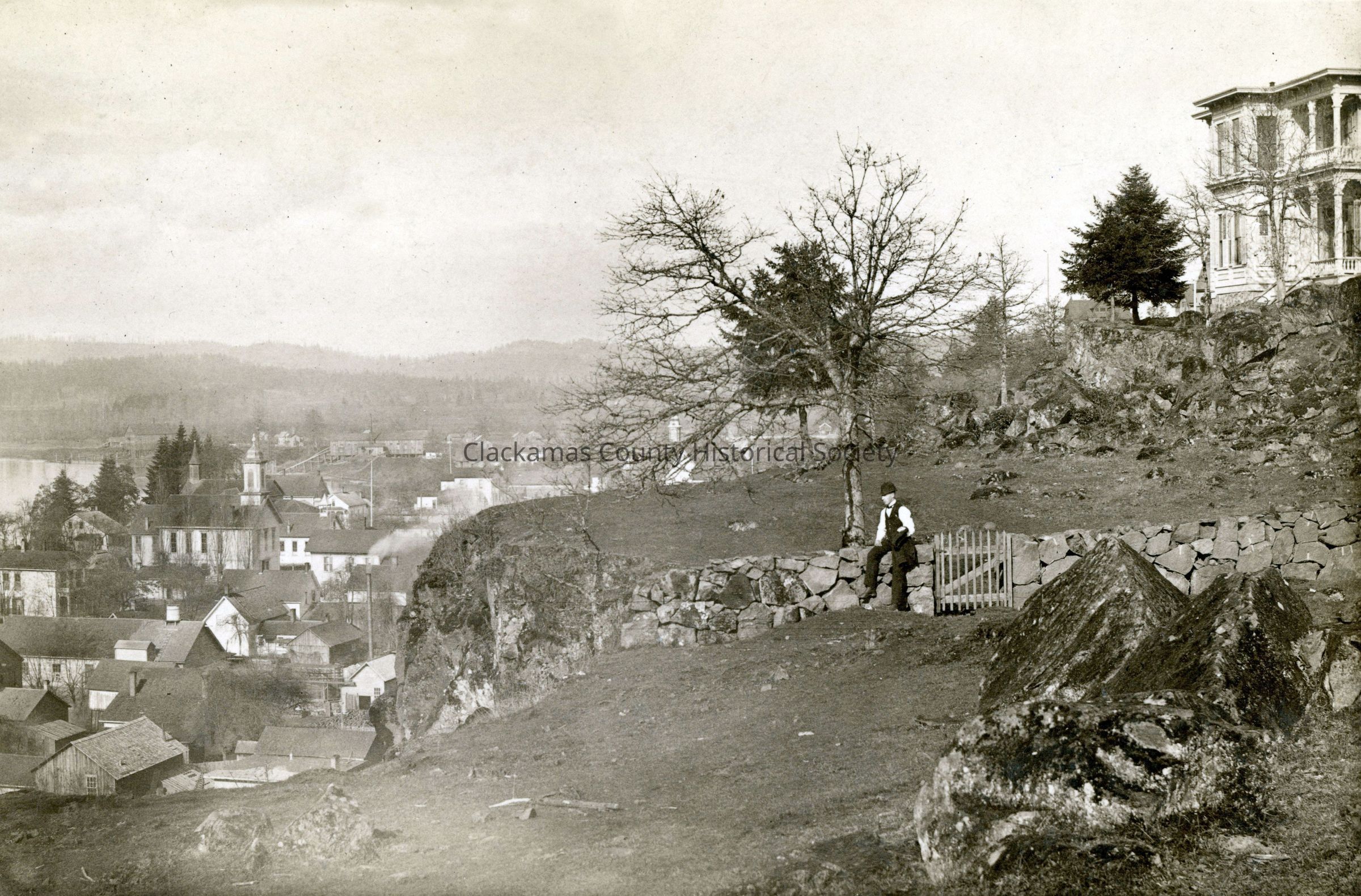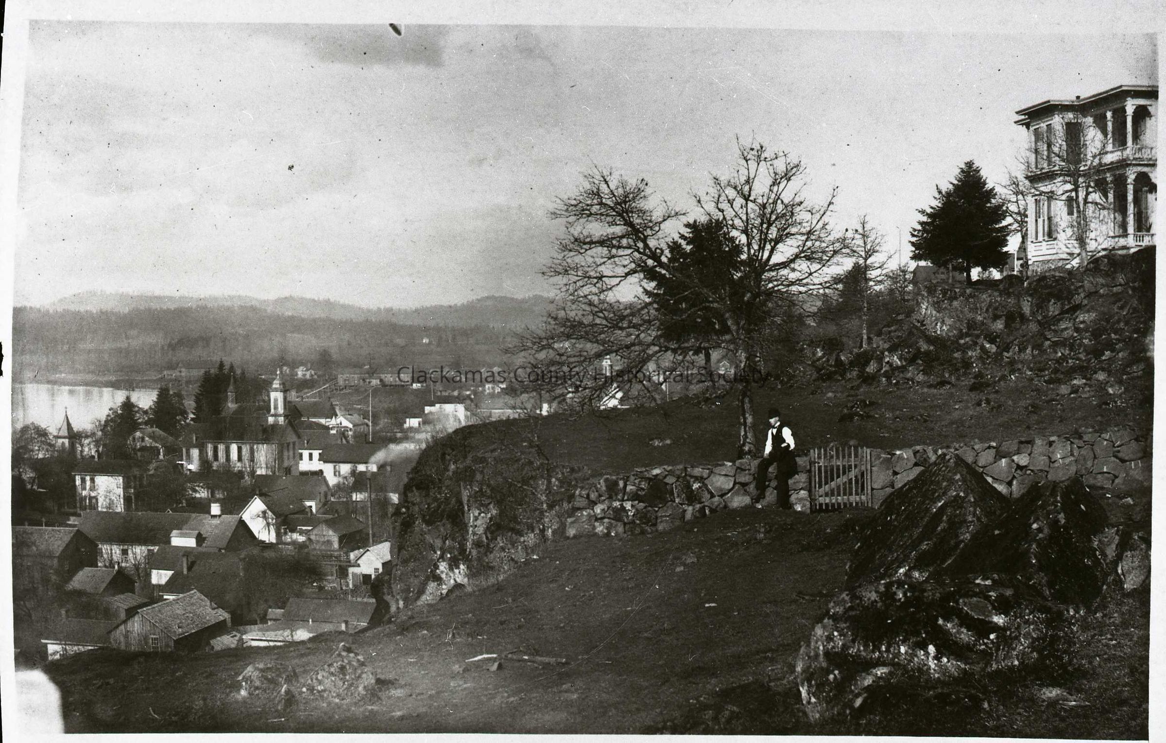 Oregon City from the Bluff at 6th with the Chase House. Photo was taken in 1888 before the tower was added to the Chase House in 1892.