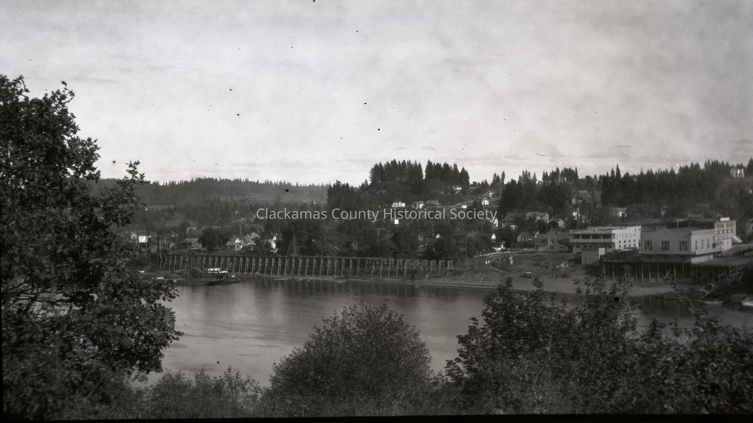 Oregon City from W. Linn showing Busch Ballroom and old log dump.Made/Created