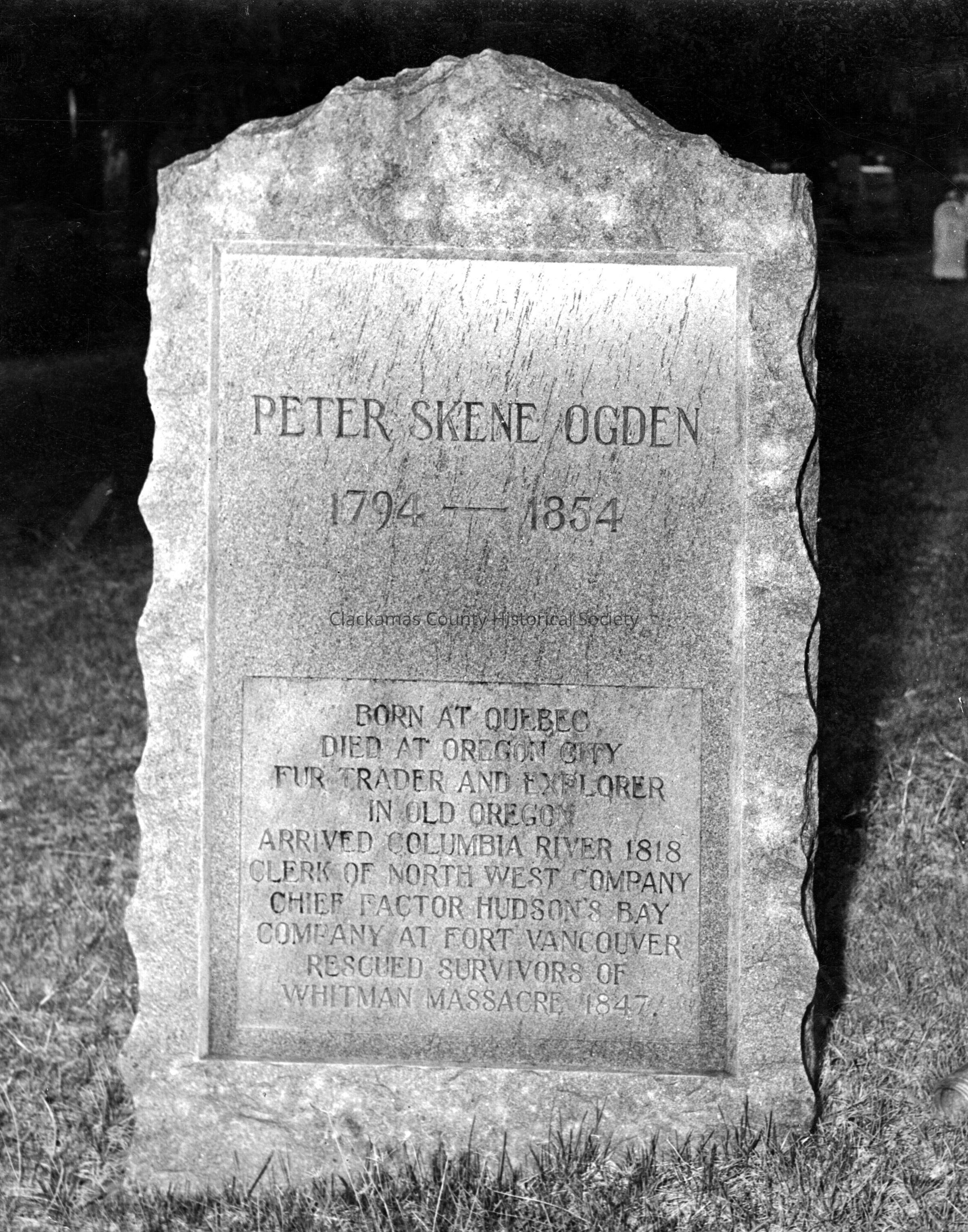 Oregon City - Gravestone of Peter Skene Ogden - Mountain View CemeteryEntry/Object ID