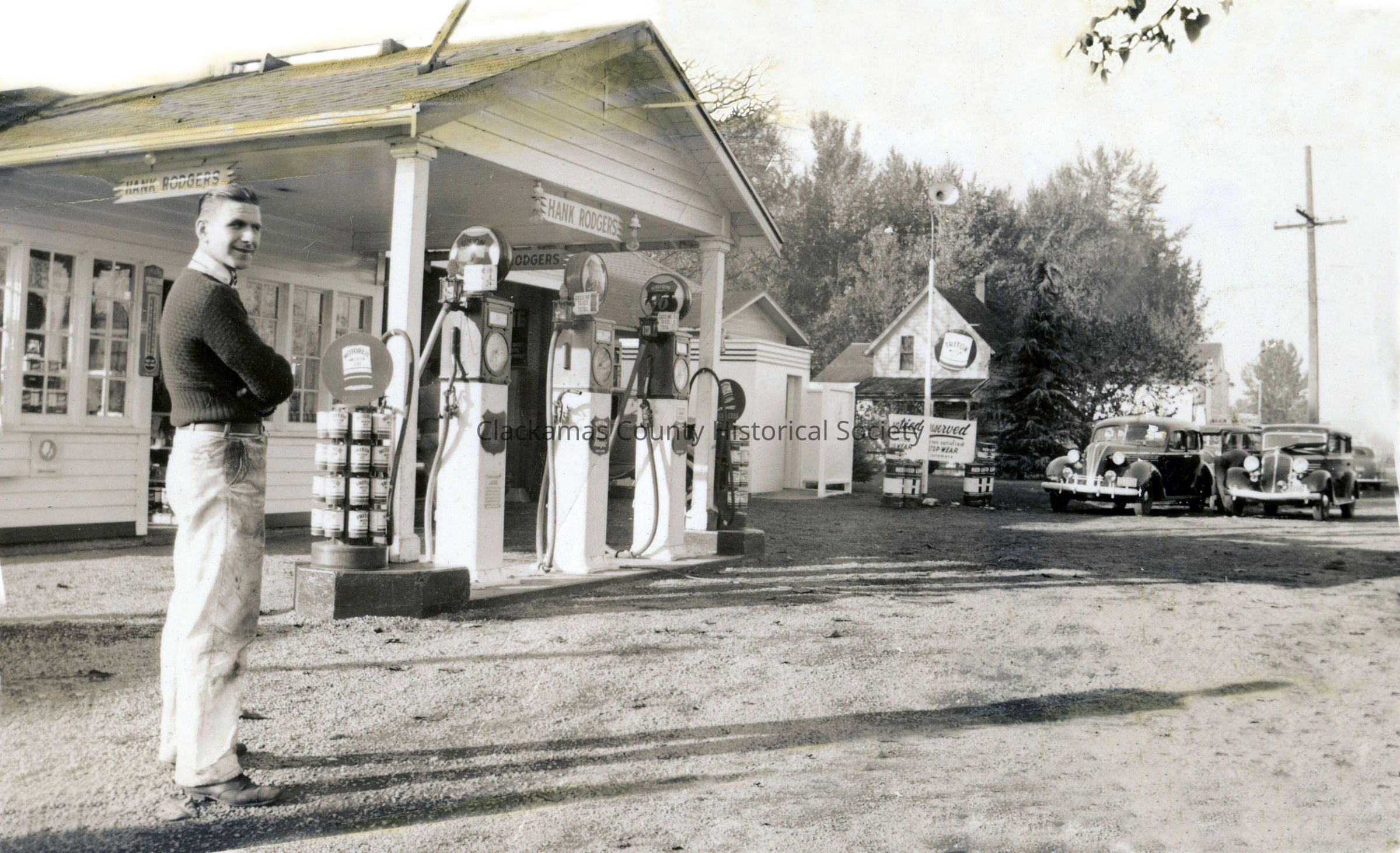 Hank Rodgers Service Station. It was where the 205 bridge crosses over McLoughlin. Late 1930's.