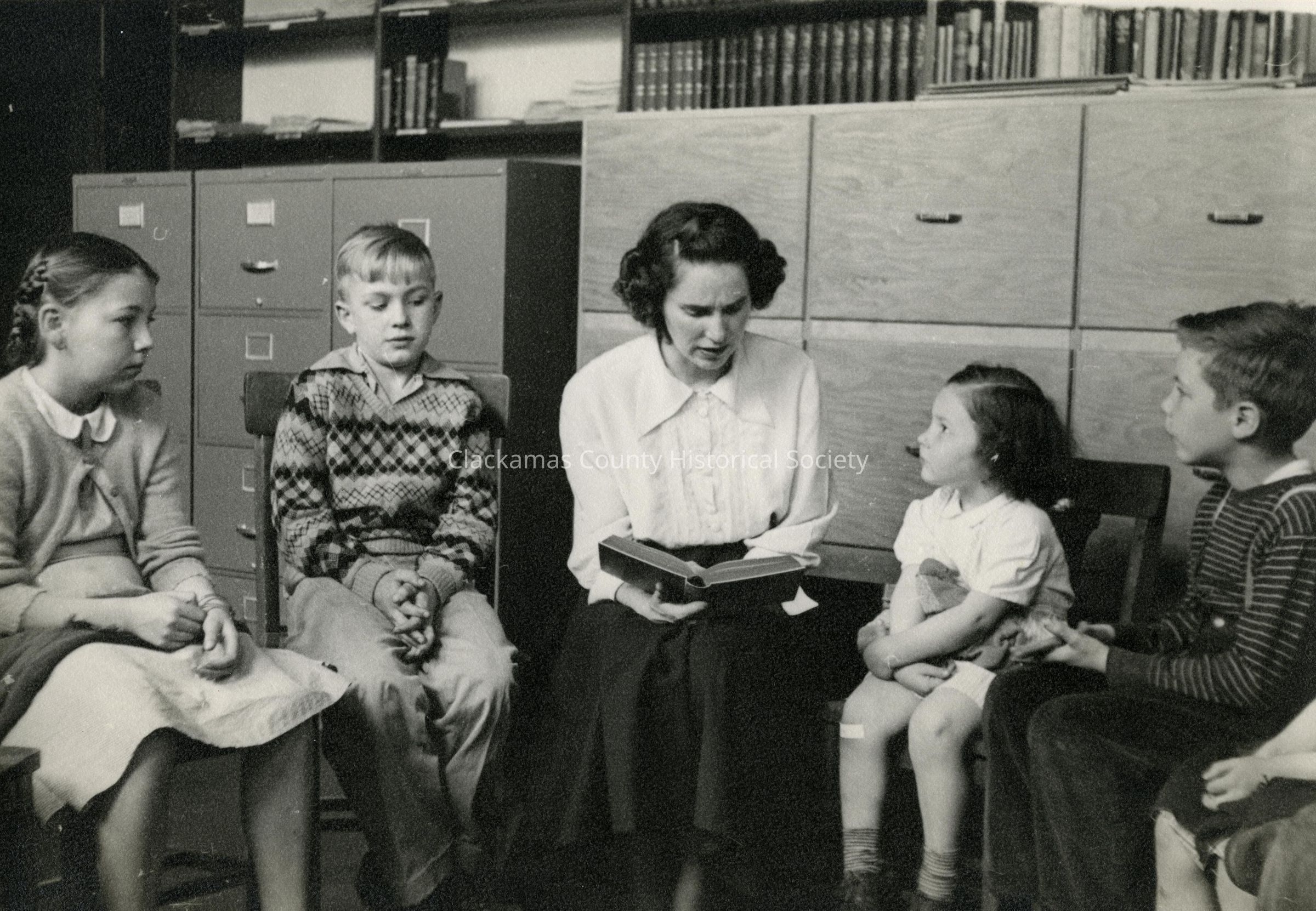 Oregon City Oregon Public Library Story Time with Jane Williamson in 1950.
