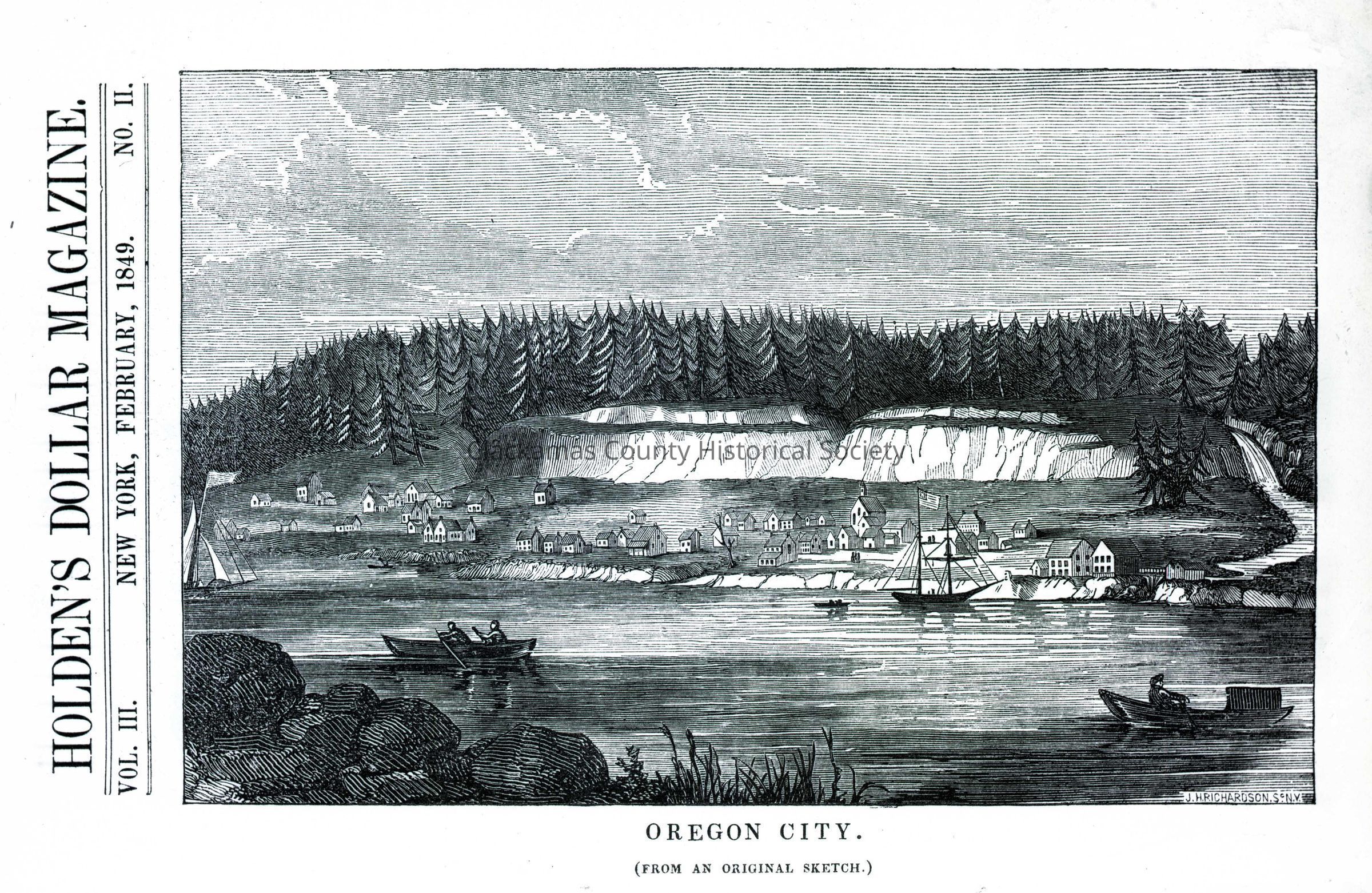 Oregon City - J.H. Richardson Lithograph. Cover for Holden's Dollar Magazine, Vol. III New York, Feb 1849 #2. McLoughlin House has original.Made/Created