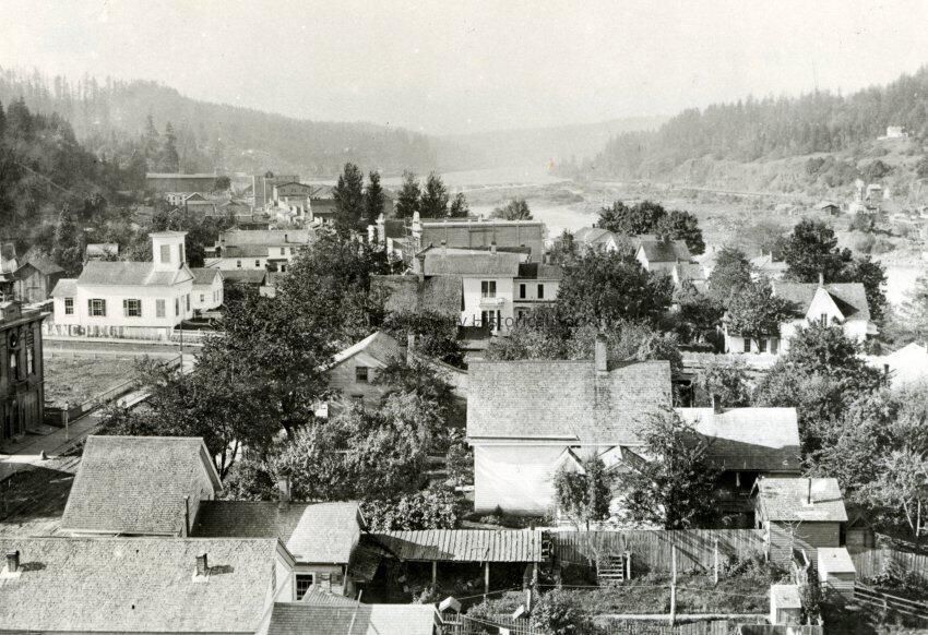 Oregon City Looking Up River from Courthouse Tower, 1886.Entry/Object ID