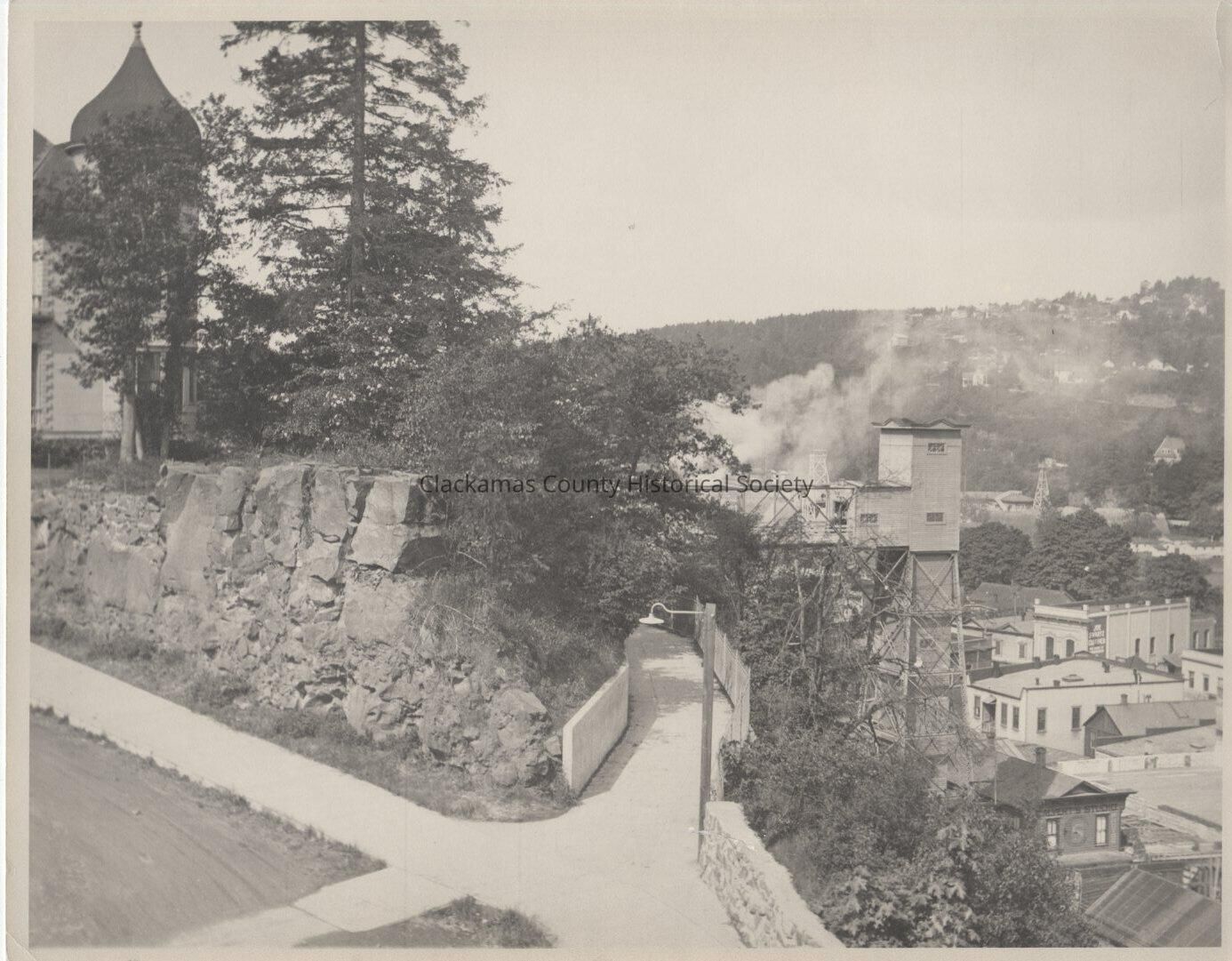 Oregon City top of bluff showing elevator and chase house
