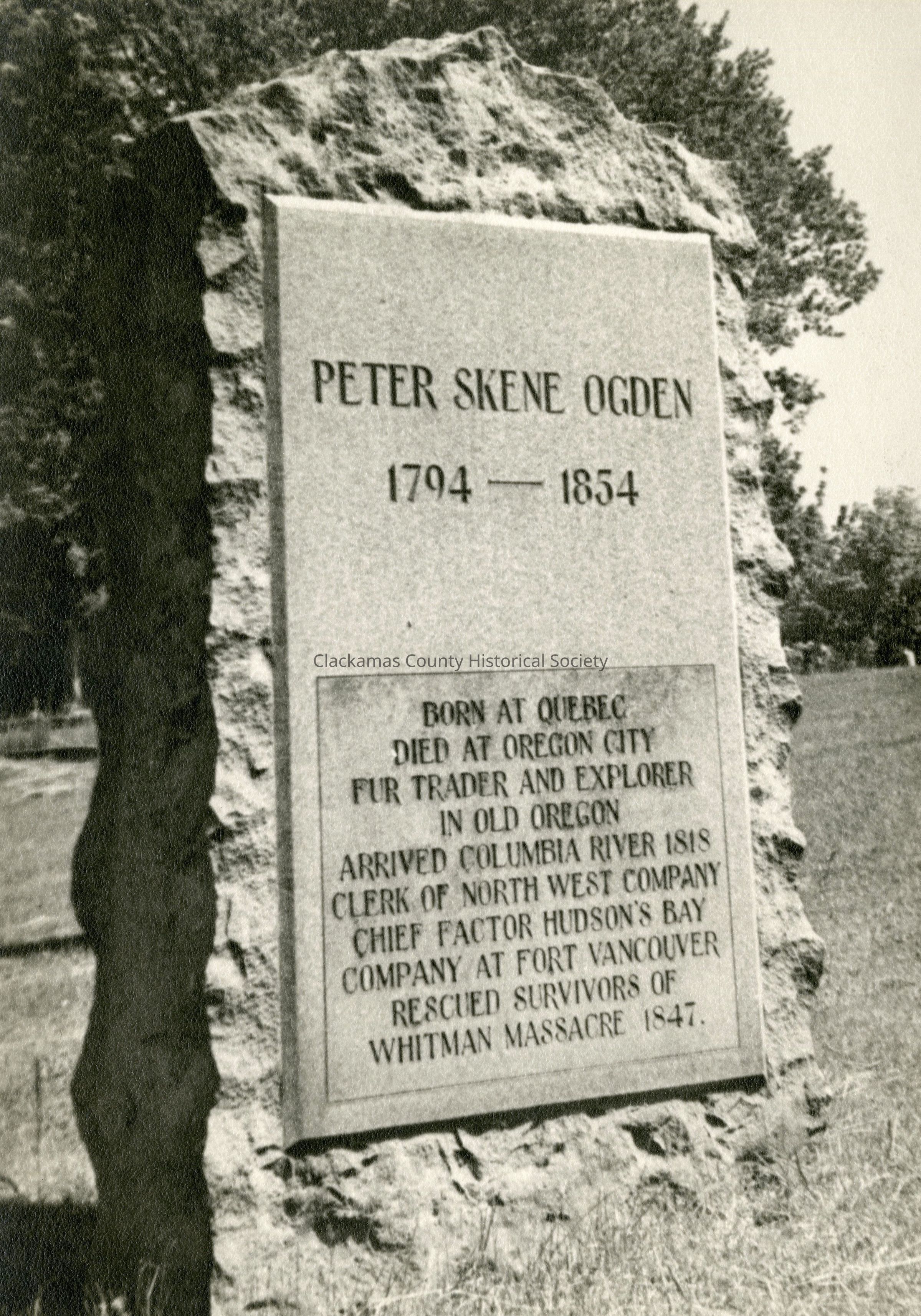 Peter Skene Ogden Grave Marker, Mt. View Cemetery, Oregon City. 1794 - 1854Made/Created