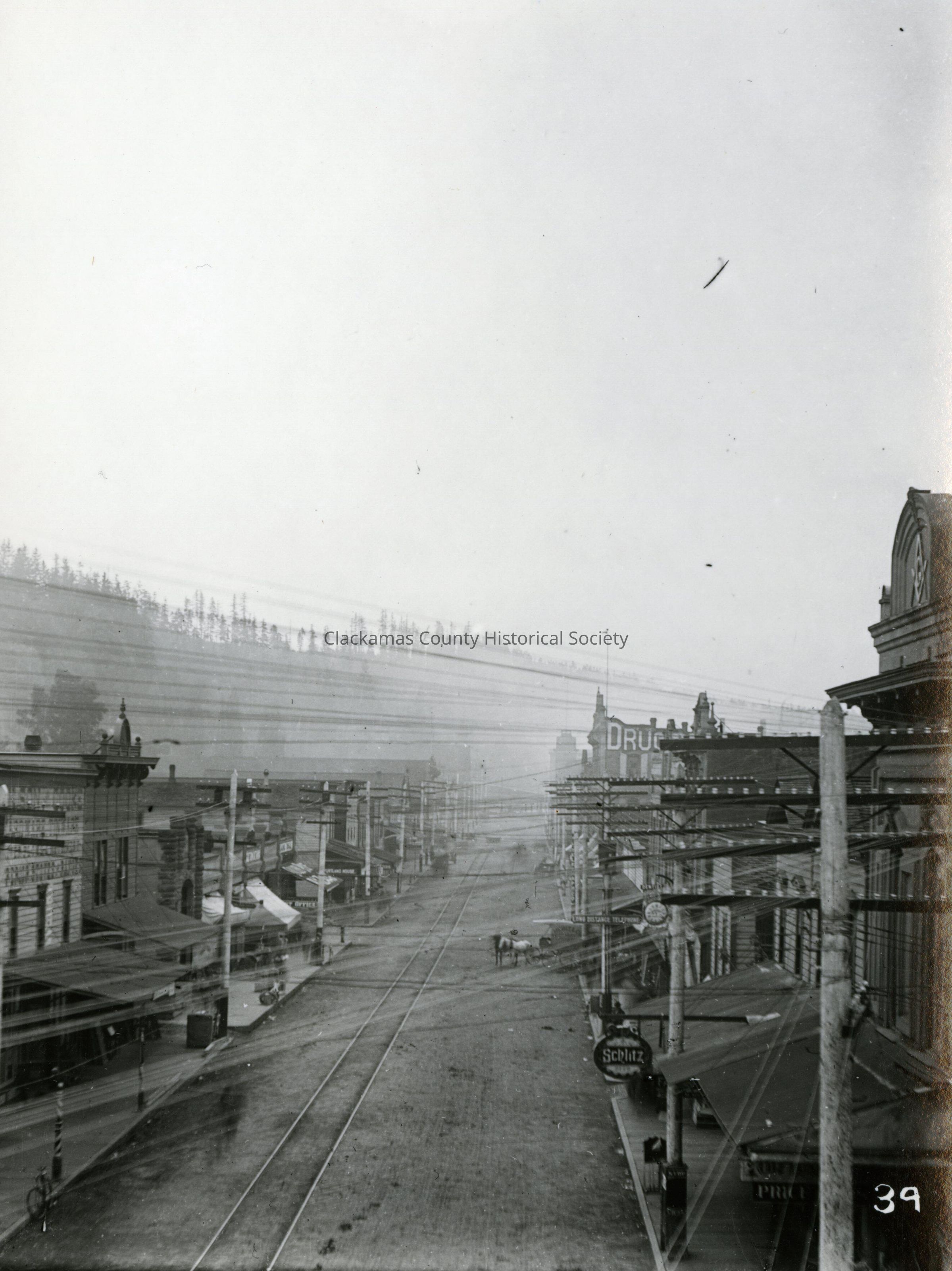 Oregon City Main Street looking south from 6th Street. Glass and film negatives in envelopes with photograph attachedMade/Created