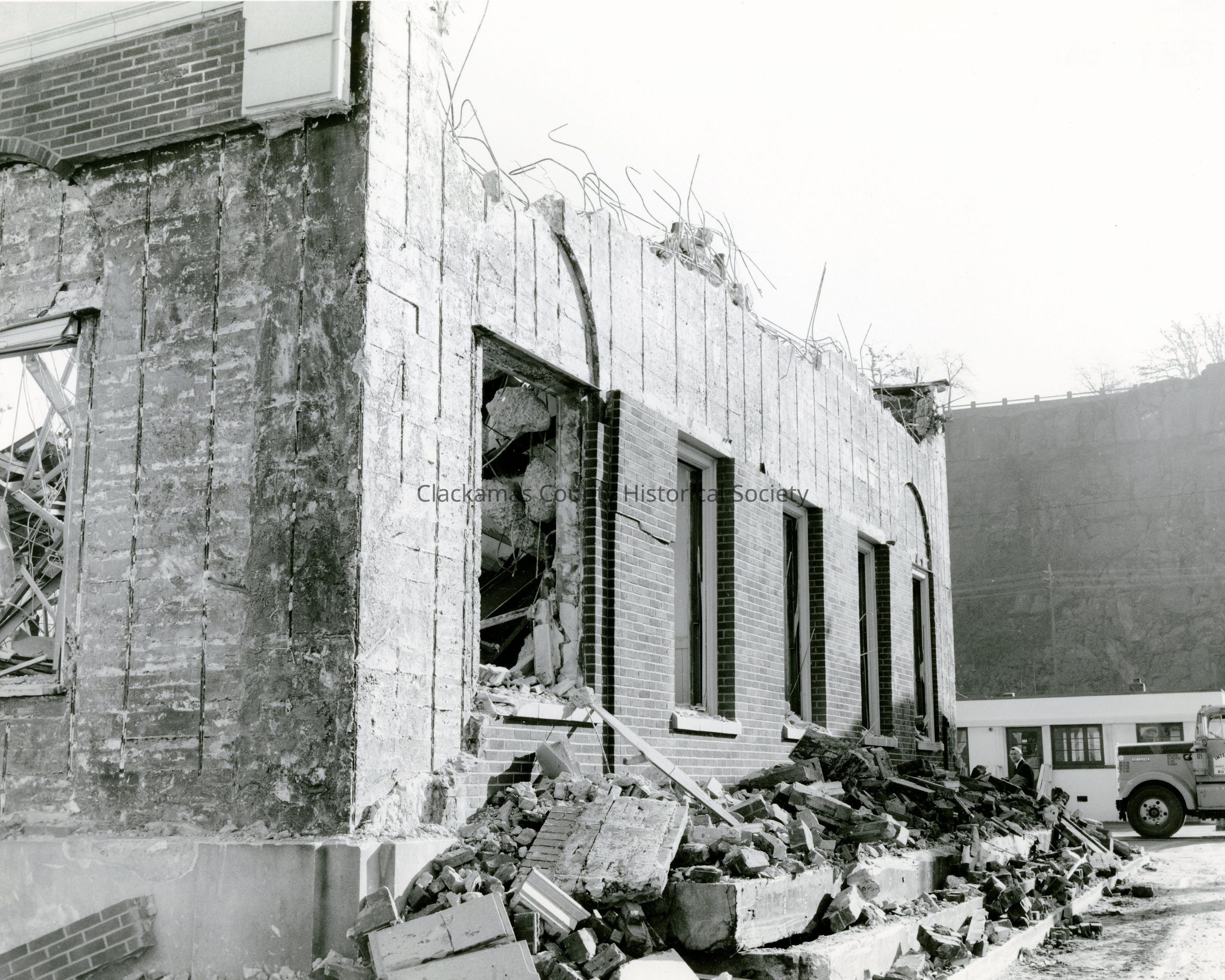 Demolition of U.S. Post Office (built 1933) located at Fifth and Main, Oregon City. Date on photo, February 7, 1967