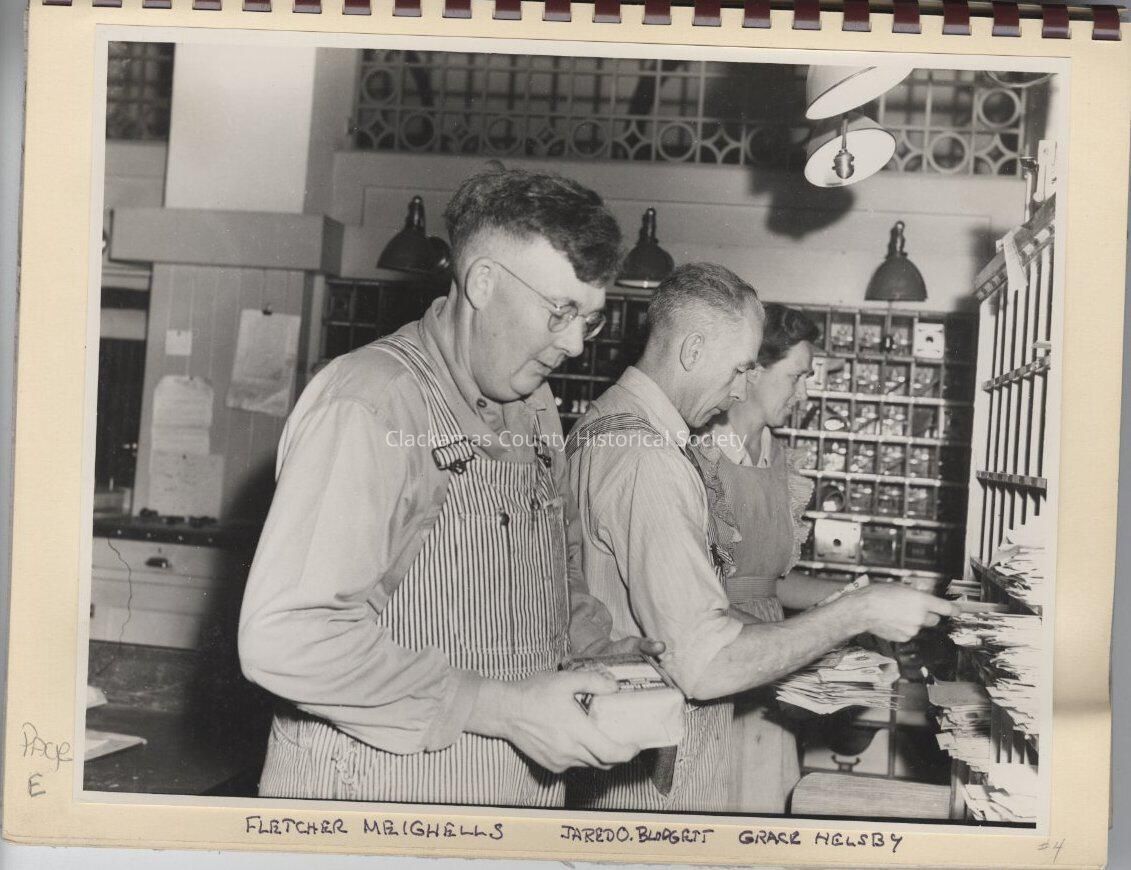 Fletcher Meighells, Jaredo Blodgett, Grace Helsby Oregon City Post Office Employees 1945 "Duplicate of P-4593"