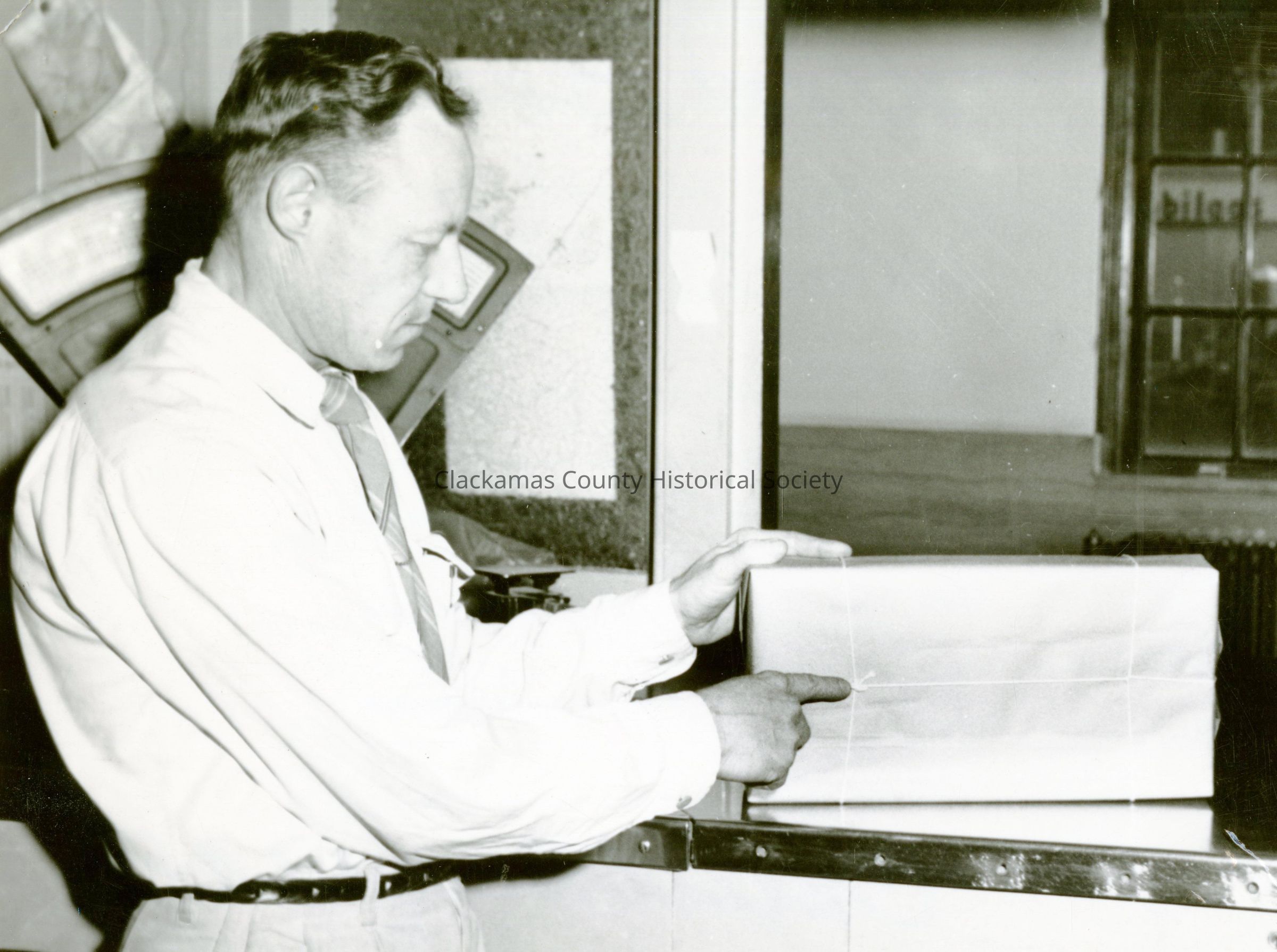 Oregon City Post Office Christmas wrapping Dan Borland showing knots Christmas 1956 U.1426.005133 B