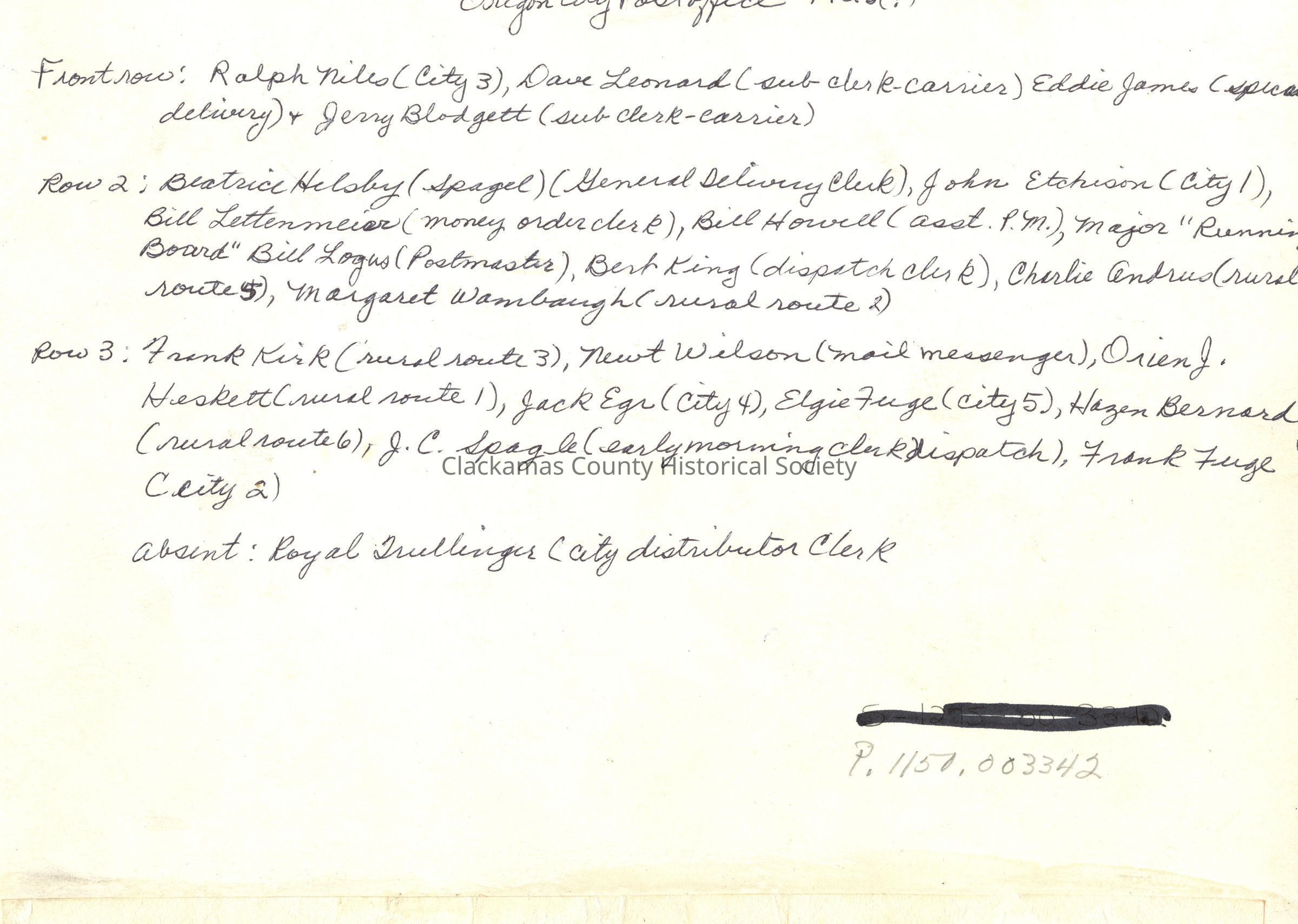 Oregon City Post Office Personnel 1925Entry/Object ID