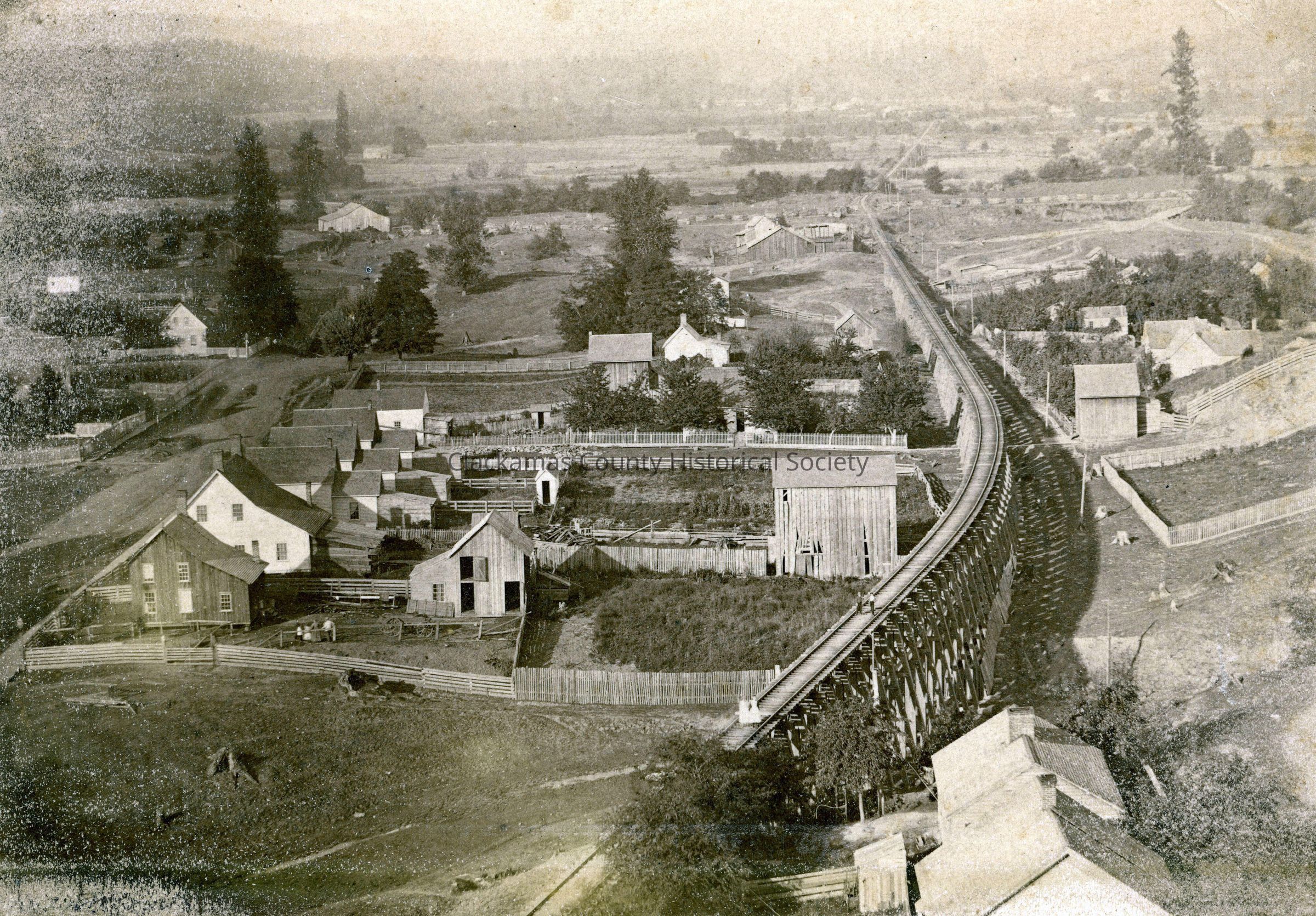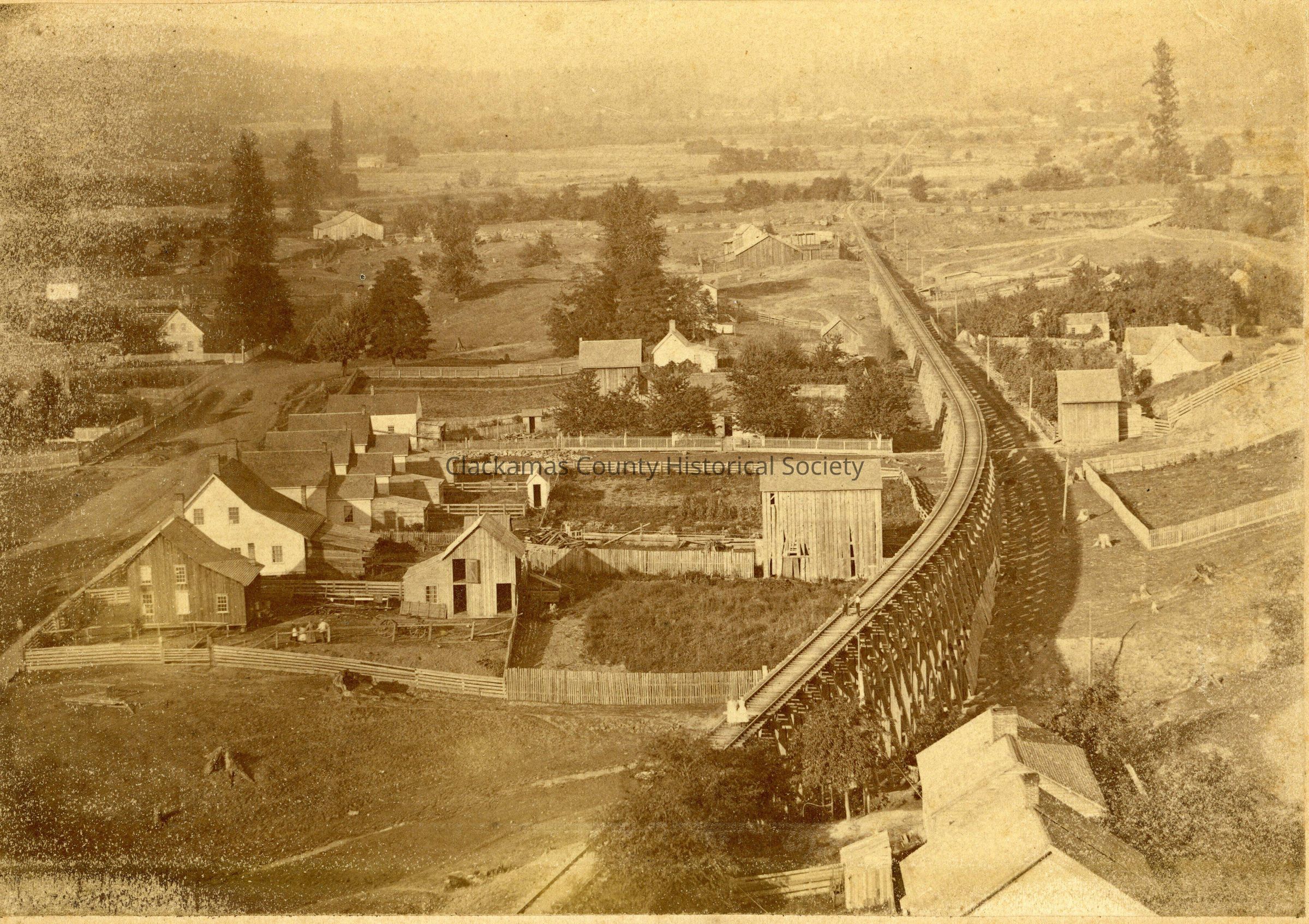 Oregon City Railroad Trestle 1874 - Looking North from 11th Street.Entry/Object ID
