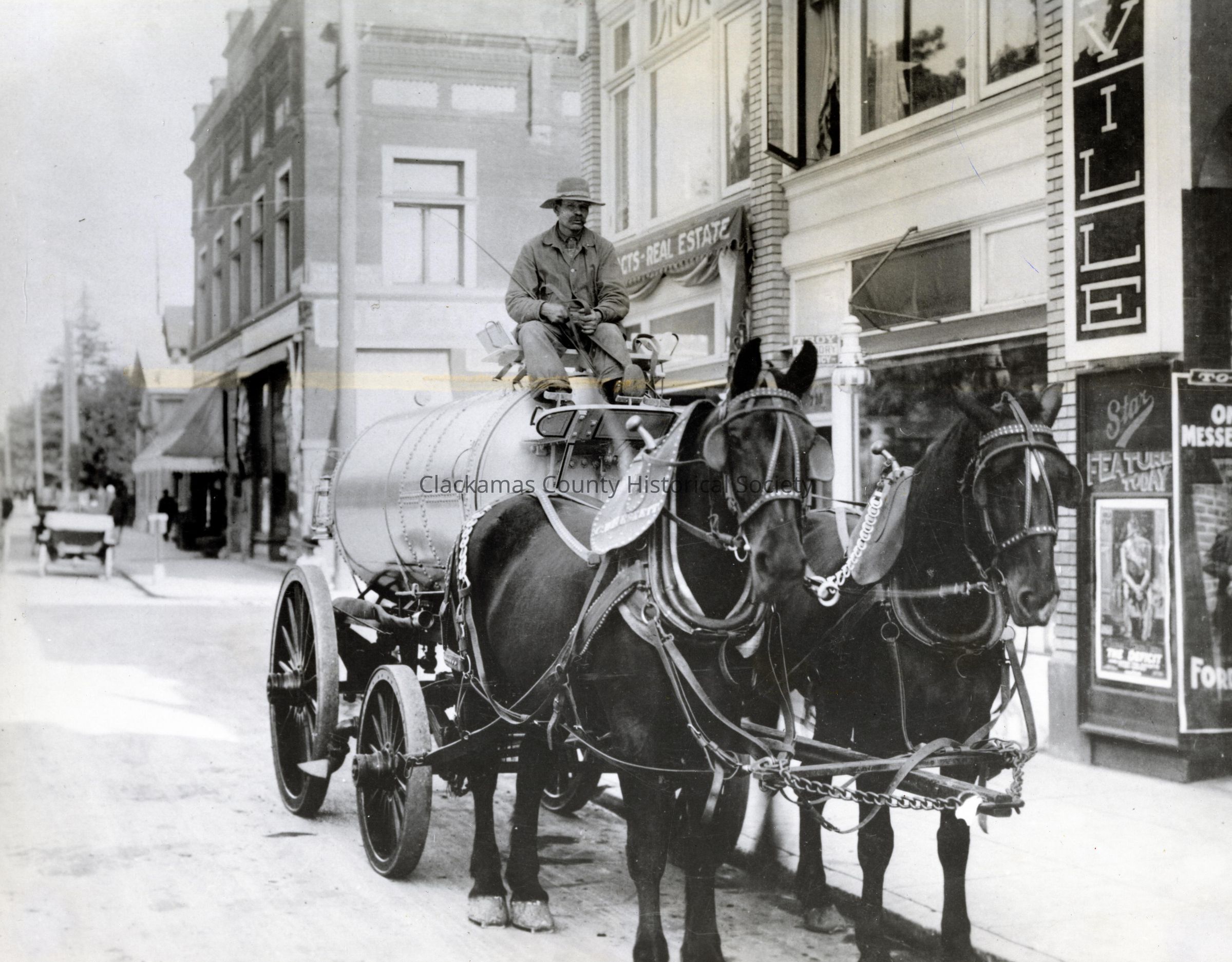 Oregon City Sprinkler Wagon 1917 - Eighth and Main - C.W. Heskett and Team