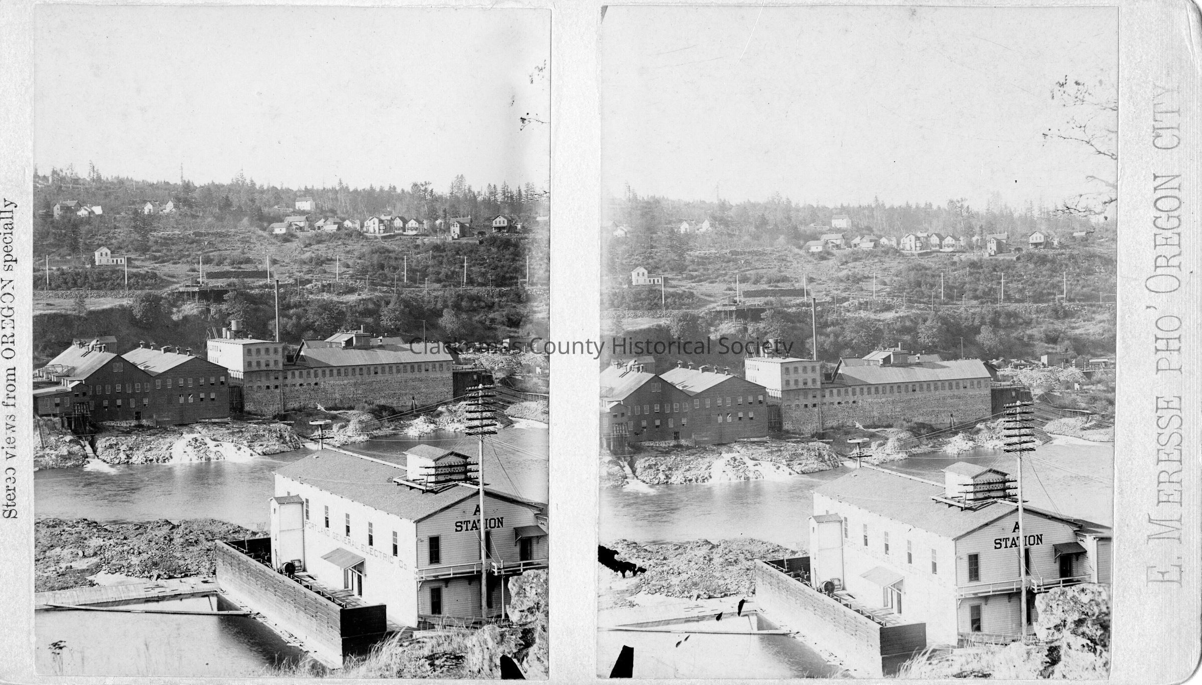 Oregon City Station A and West Linn Mills, 1895. Stereoscope photo.Made/Created