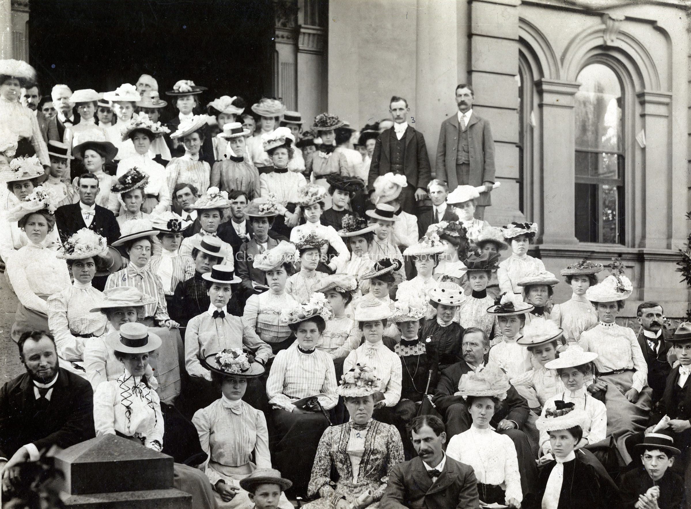 Unknown Group, mostly women, in front of Courthouse. Possibly the Clackamas County Teacher's Institute. No DateMade/Created