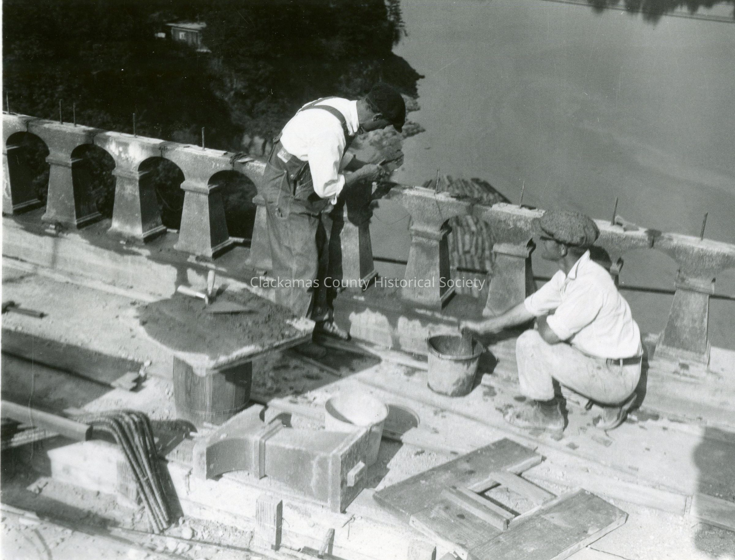 Oregon City/West Linn Oregon Bridge Railing Construction and workers. No Date