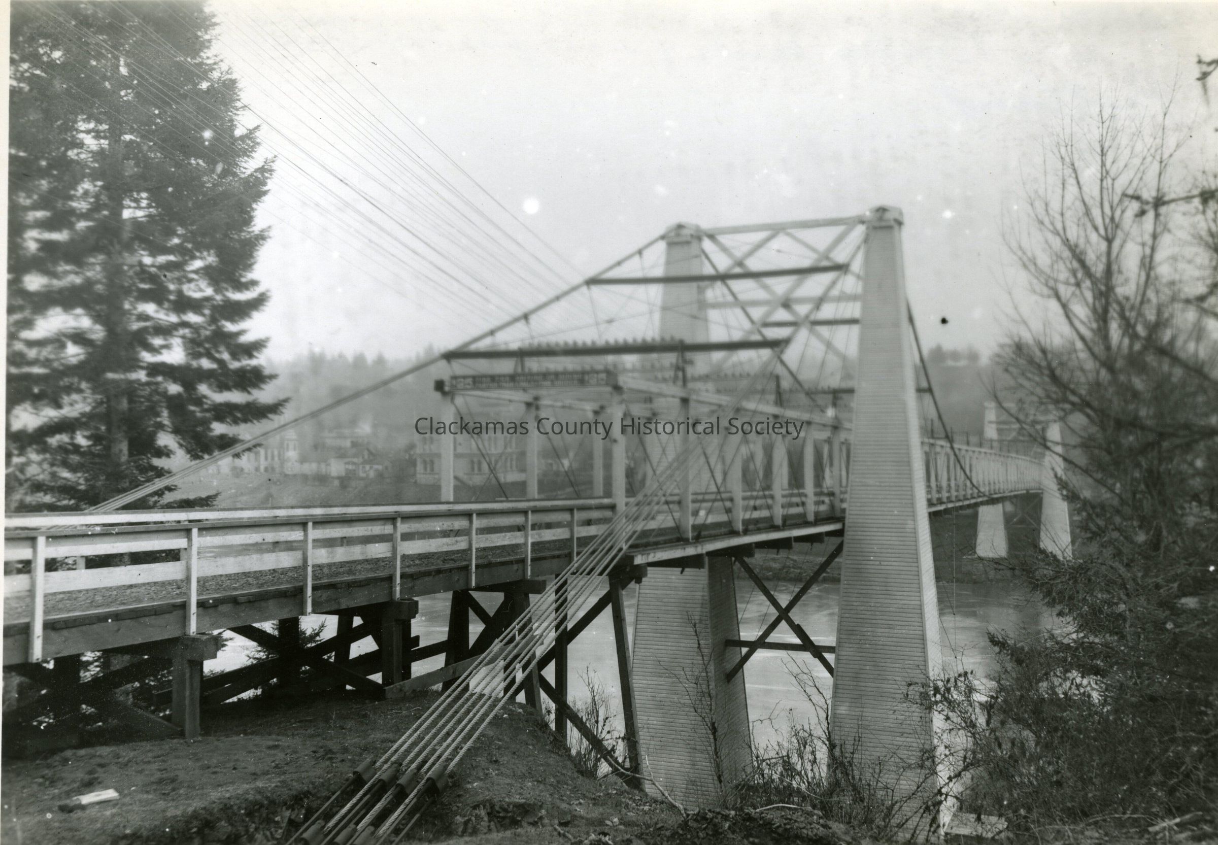 Oregon City-West Linn Bridge, 1887-1889. Note electric knobs and wire for 1st electric line to Portland.Made/Created