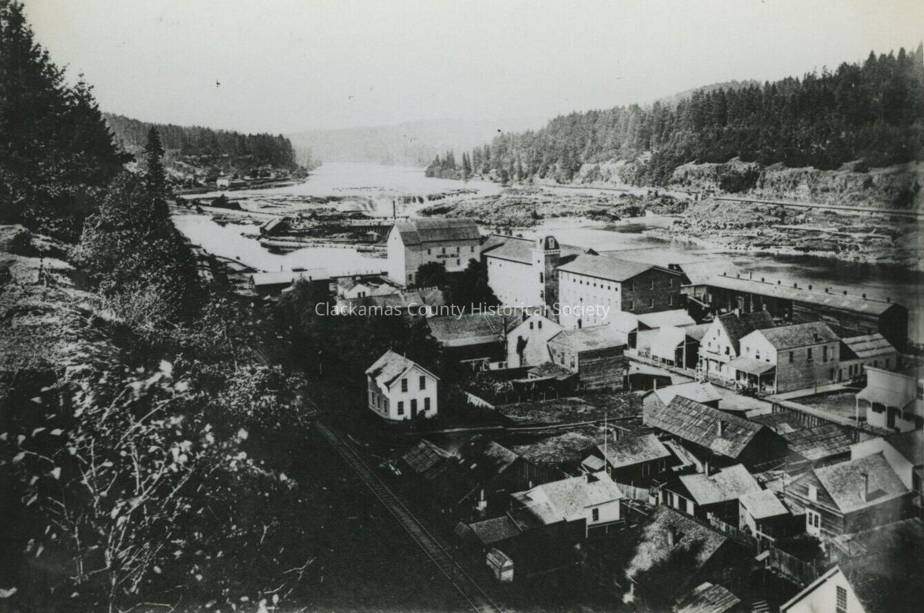 Oregon City - Willamette Falls and Mills from the Bluff - Oregon City - 1876 -Copy