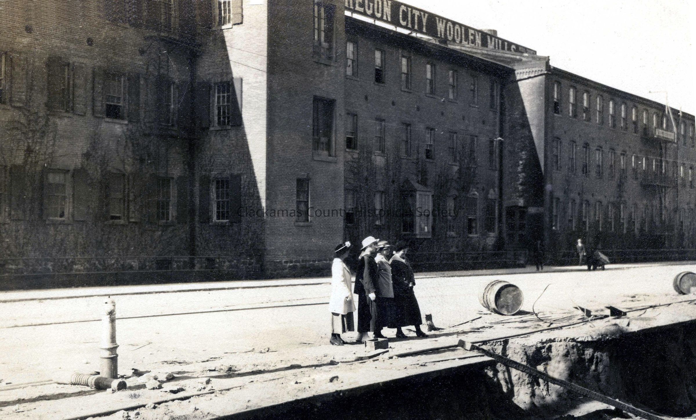Oregon City Woolen Mill. 1909. Constructing Oregon City water works building on site of McLoughlin House. Unidentified people.Made/Created