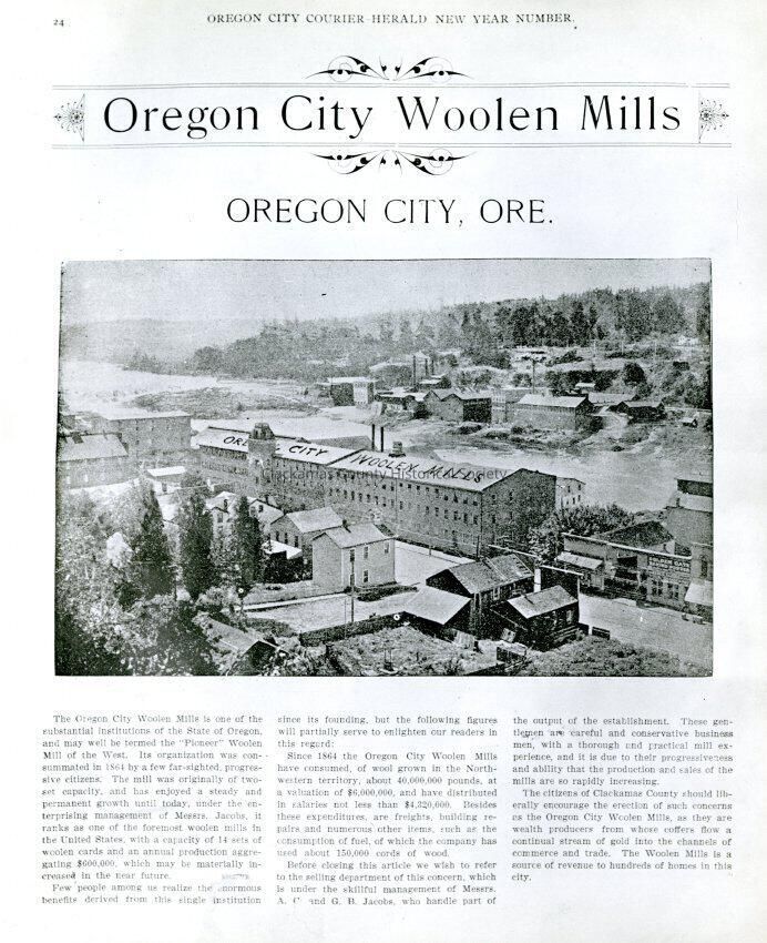 Oregon City Woolen Mills, Willamette Falls, and West Linn mills.Entry/Object ID