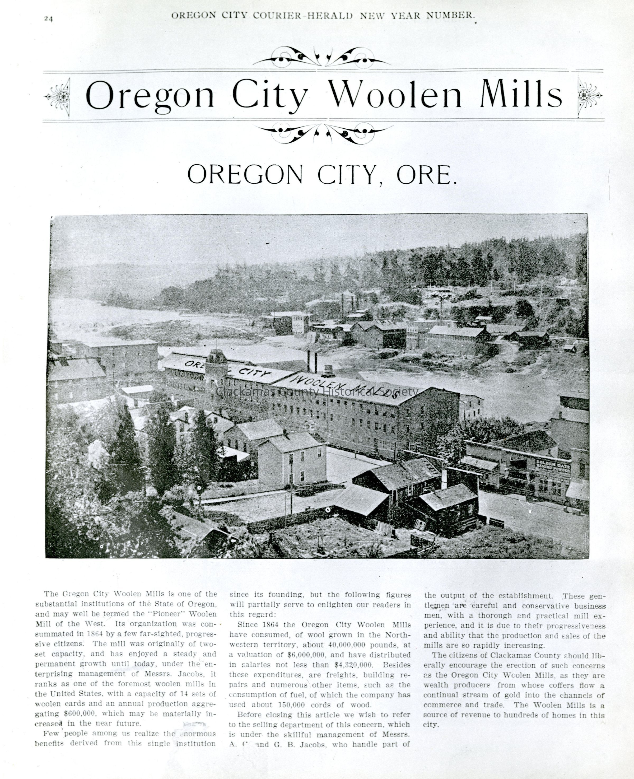 Oregon City Woolen Mills, Willamette Falls, and West Linn mills. Newspaper photo.Made/Created