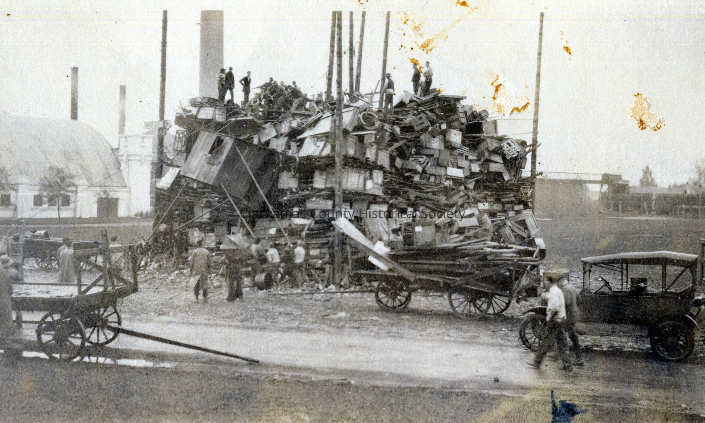 Oregon State College Football Bonfire Pile for Homecoming - Sepia