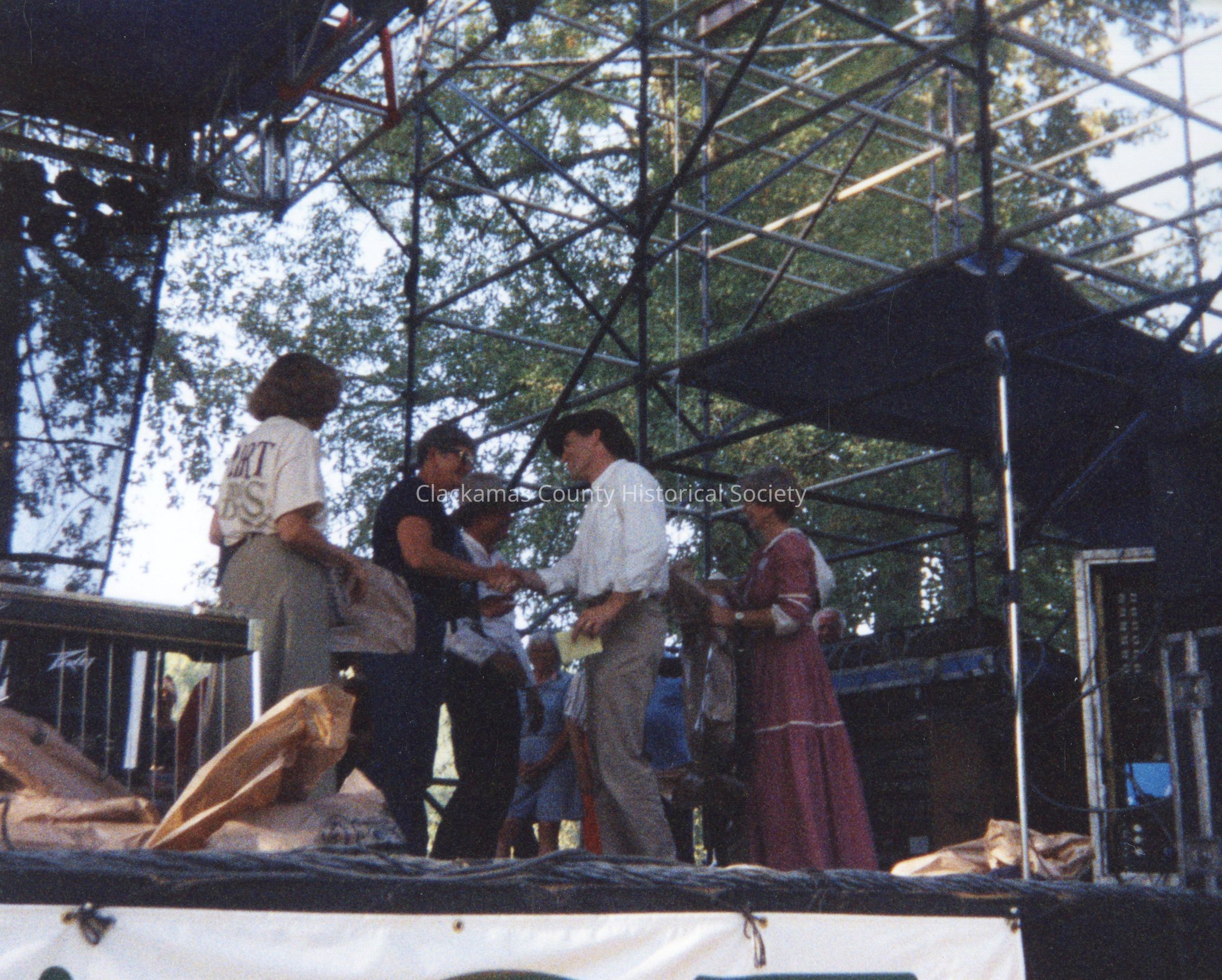 September 4, 1993 - Arriving at the "End of the Trail Interpretive Center" - Abernathy Green - Mayor Dan Fowler (White Shirt) on Stage