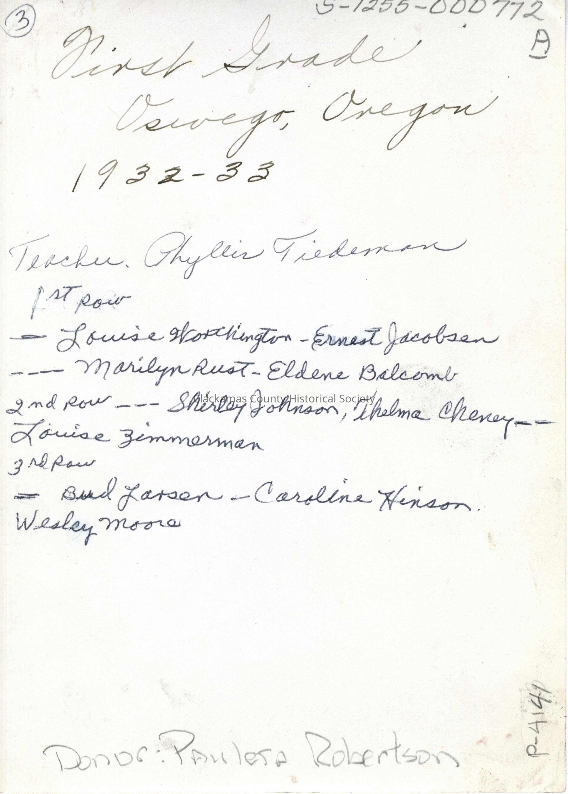 Oswego Lakewood Grade School - First Grade Students 1932-33