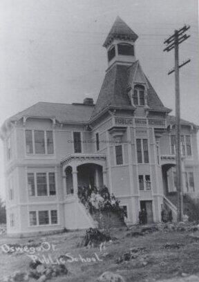 Oswego School 2nd bldg. 1909 Mrs Munnick