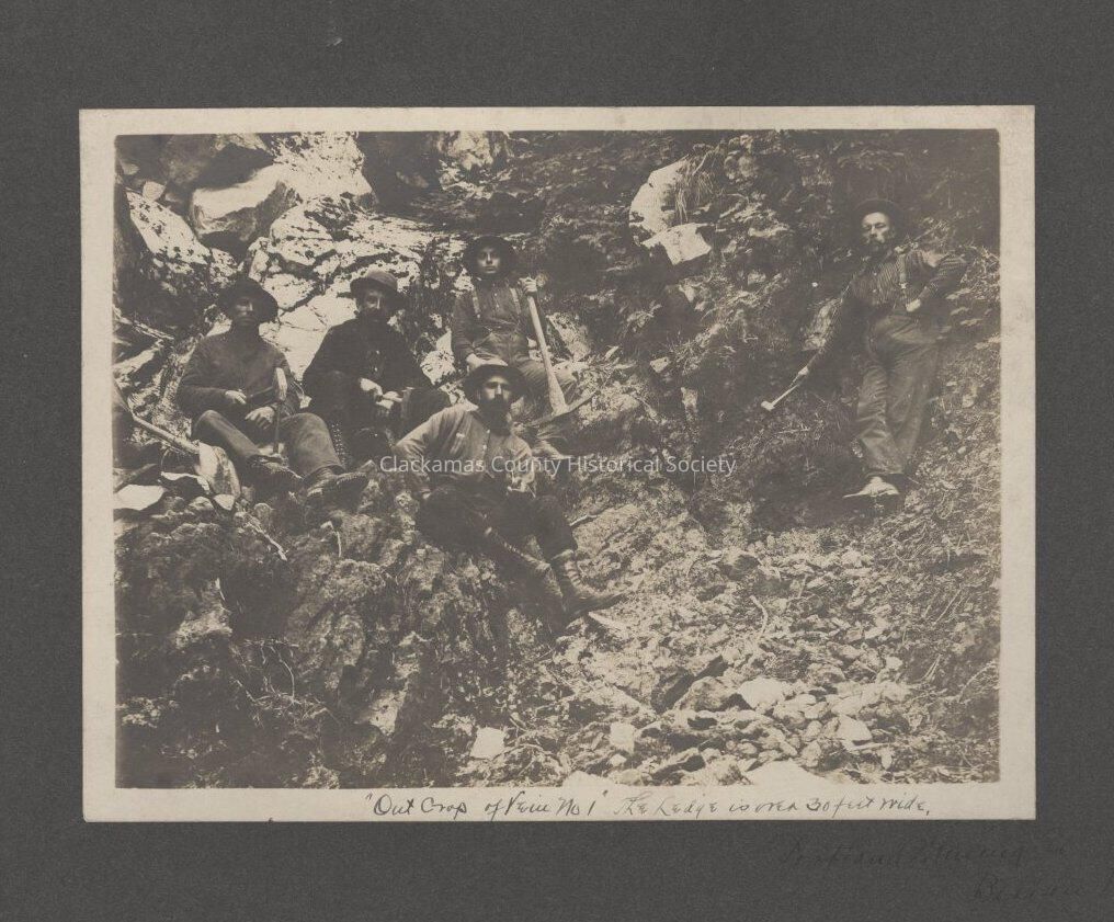 Out crop of vein No 1 the ledge is over 30 feet wide 5 men with pits