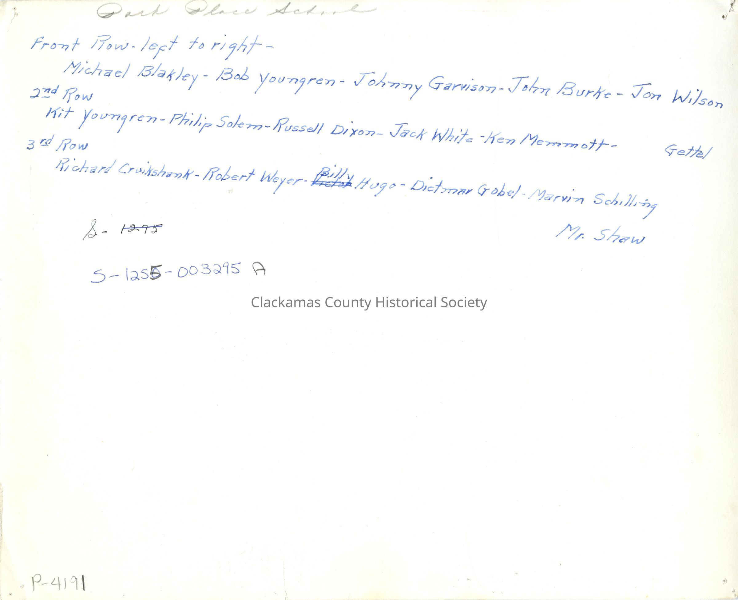Park Place School - Basketball TeamEntry/Object ID