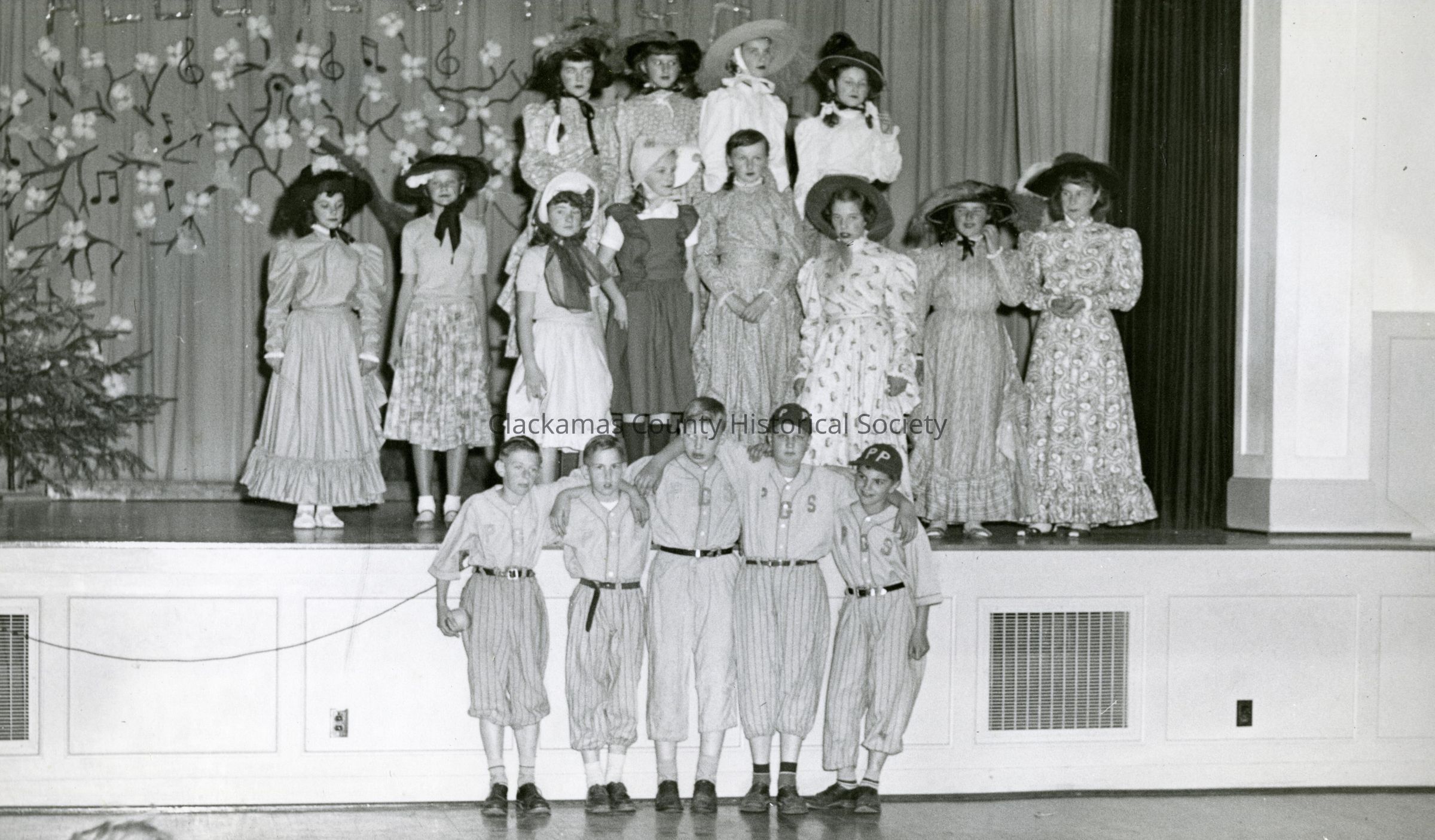 Photograph of a group of students at a park Place class event. "Albums of Music"