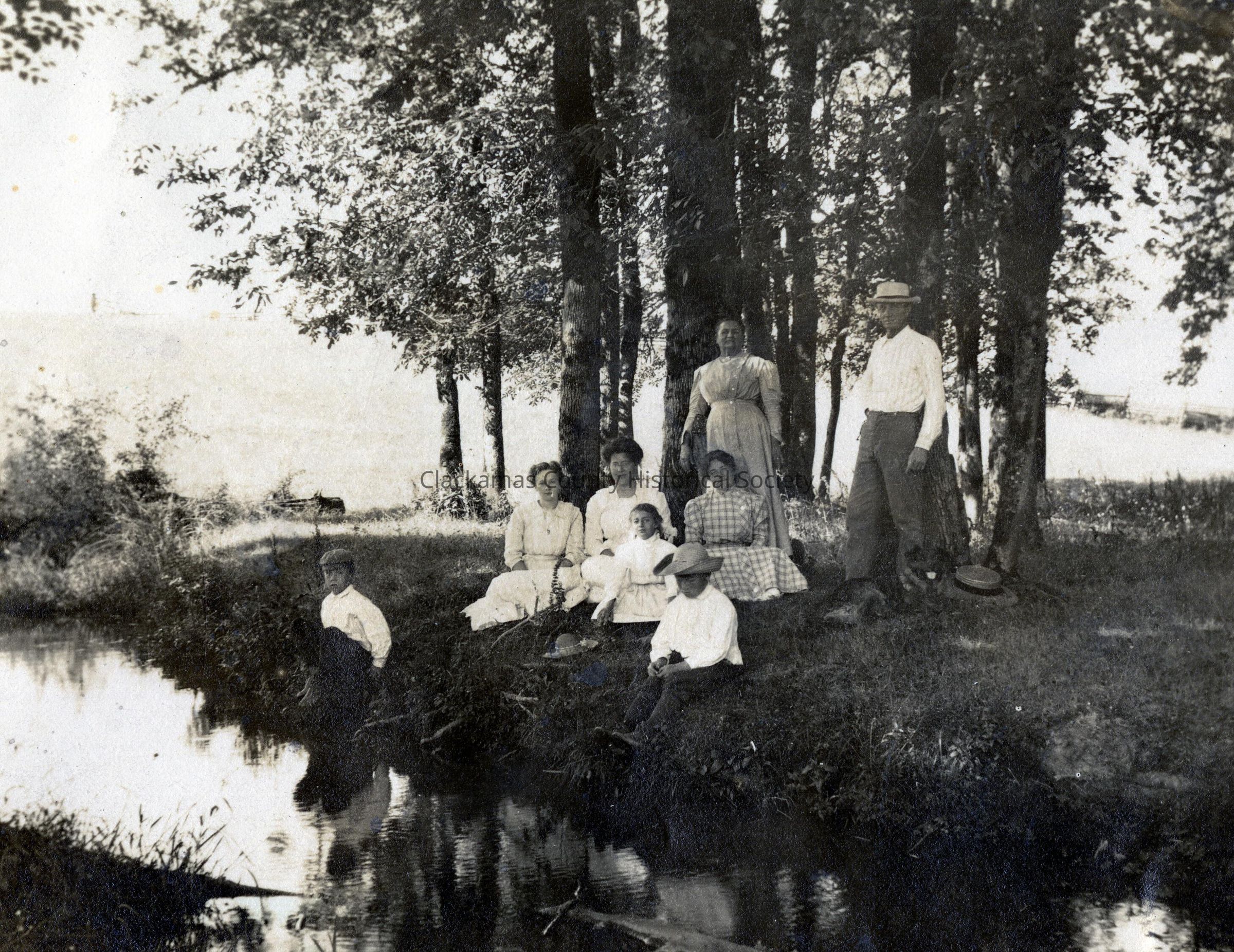 Pearl Meldrum Stevens and twins - c.1909 - outing by the water (Yamhill River?)Entry/Object ID