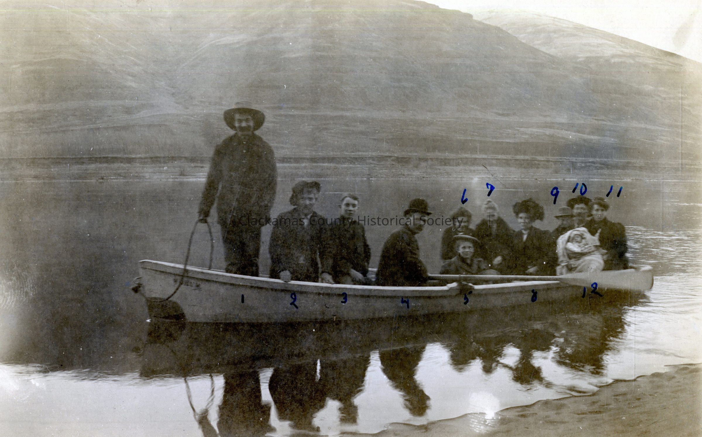 Post Card - On Back - "Dear Sister Emma - I'm sending you a picture of the group that was at our house last Sunday. Will is No. 1, 2 is Mr. Rusark, 3 is my nephew, 4 is Mr. Worum, 5 is my niece, 6 is myself, 7 is Mrs. Worum, 8 is Mrs. Rusark, 9,10,11, 12 are my sister, her husband and 2 children. We Wish You a Merry Christmas Emma Quinn"