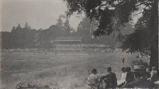 People watching a baseball game. circa 1913-1915 Campsite Campsite