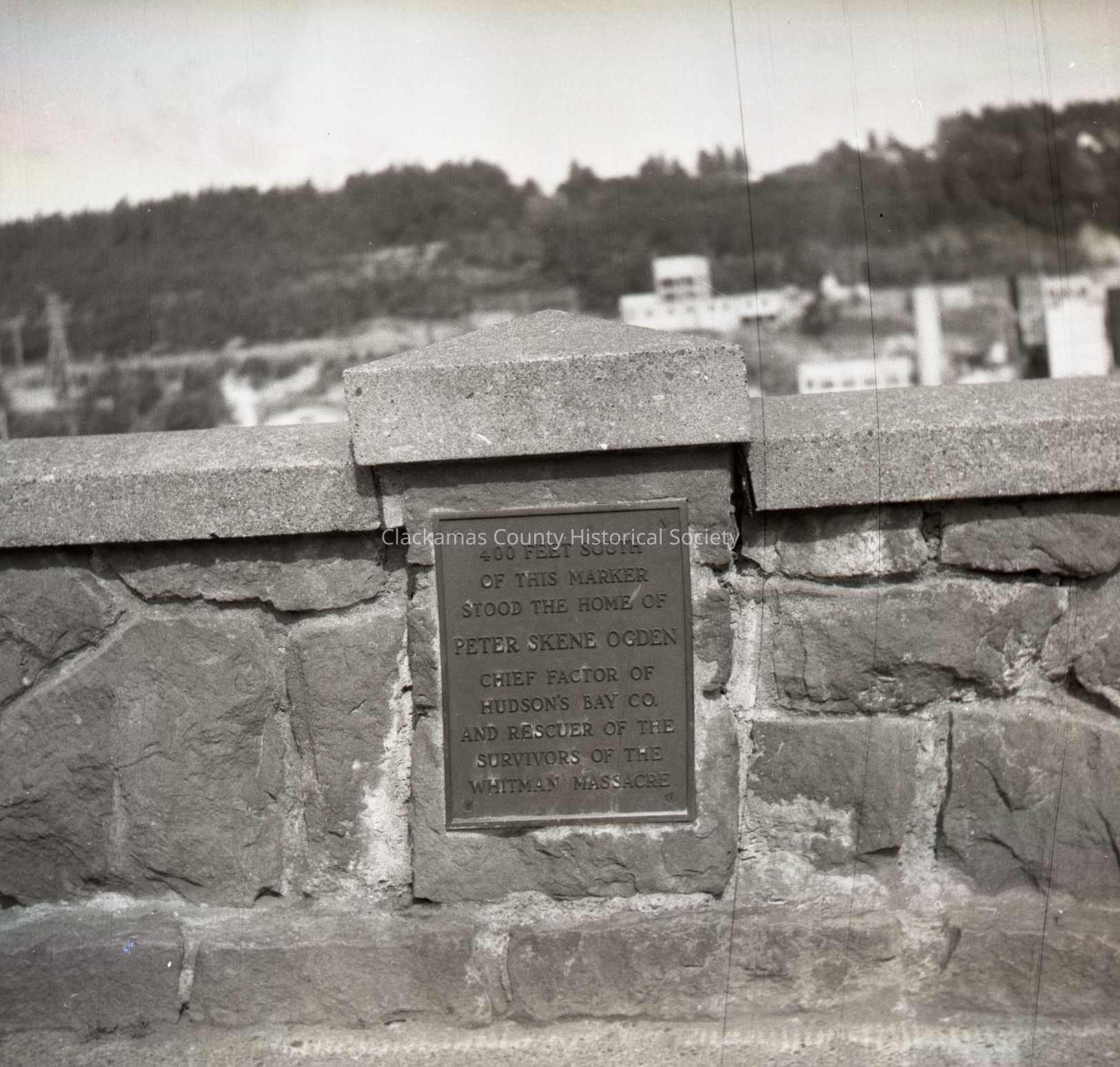 Peter Skene Ogden Marker on Oregon City Bluff.Entry/Object ID