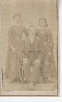 Photograph of Two Unknown women and man sitting in front of houseEntry/Object ID