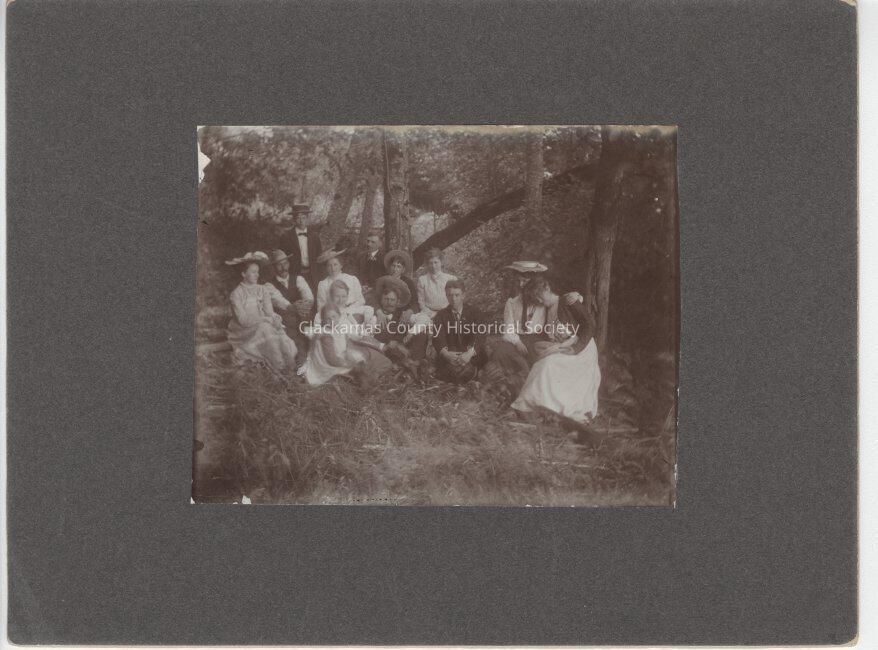 Picnic near Roethes Landing 1902 Left to Right John Oatfield, Elsie Backus (both later married) Dora Thiessen, Phil Oatfield, Annie Thiessen Miveria Thiessen