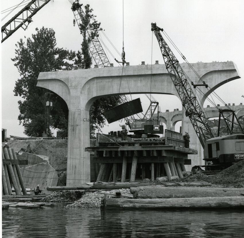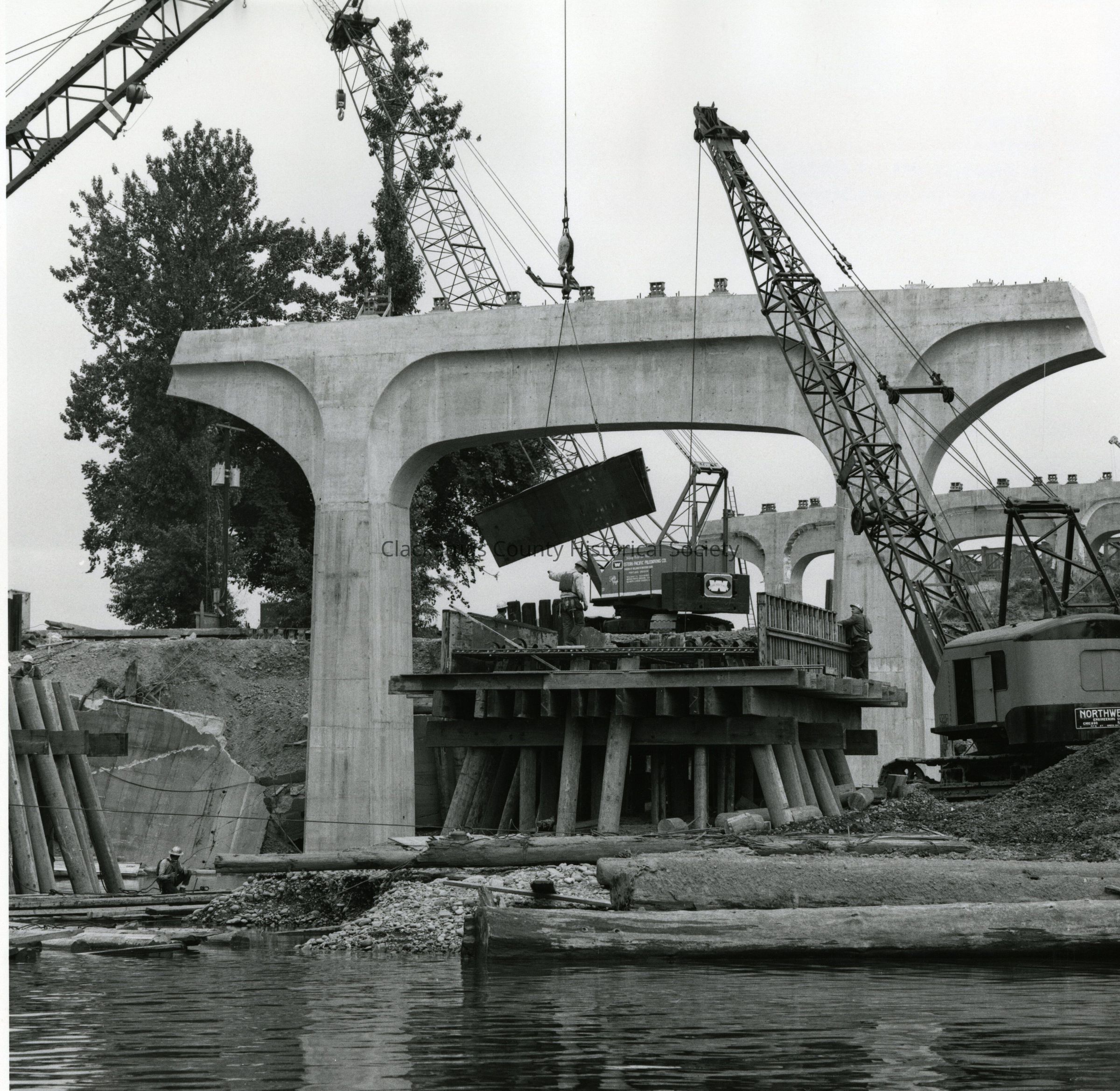 Pilons and Cranes, I-205 Bridge Construction.Entry/Object ID