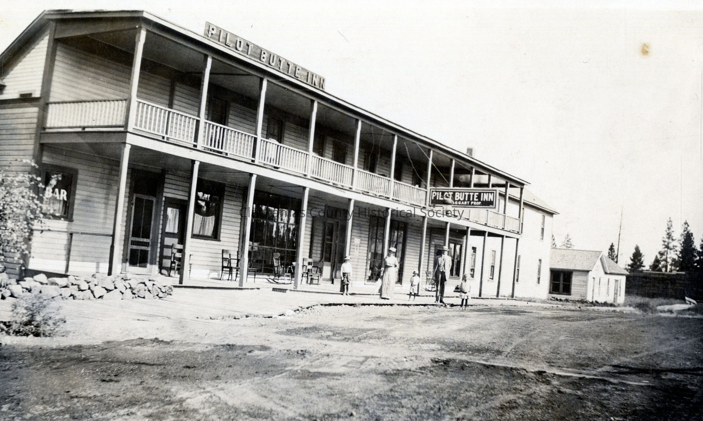 Caufield Family Collection, Uncle Clair, Aunt Mint, and 3 children; Pilot Butte Inn; Bend, Oregon August 1914
