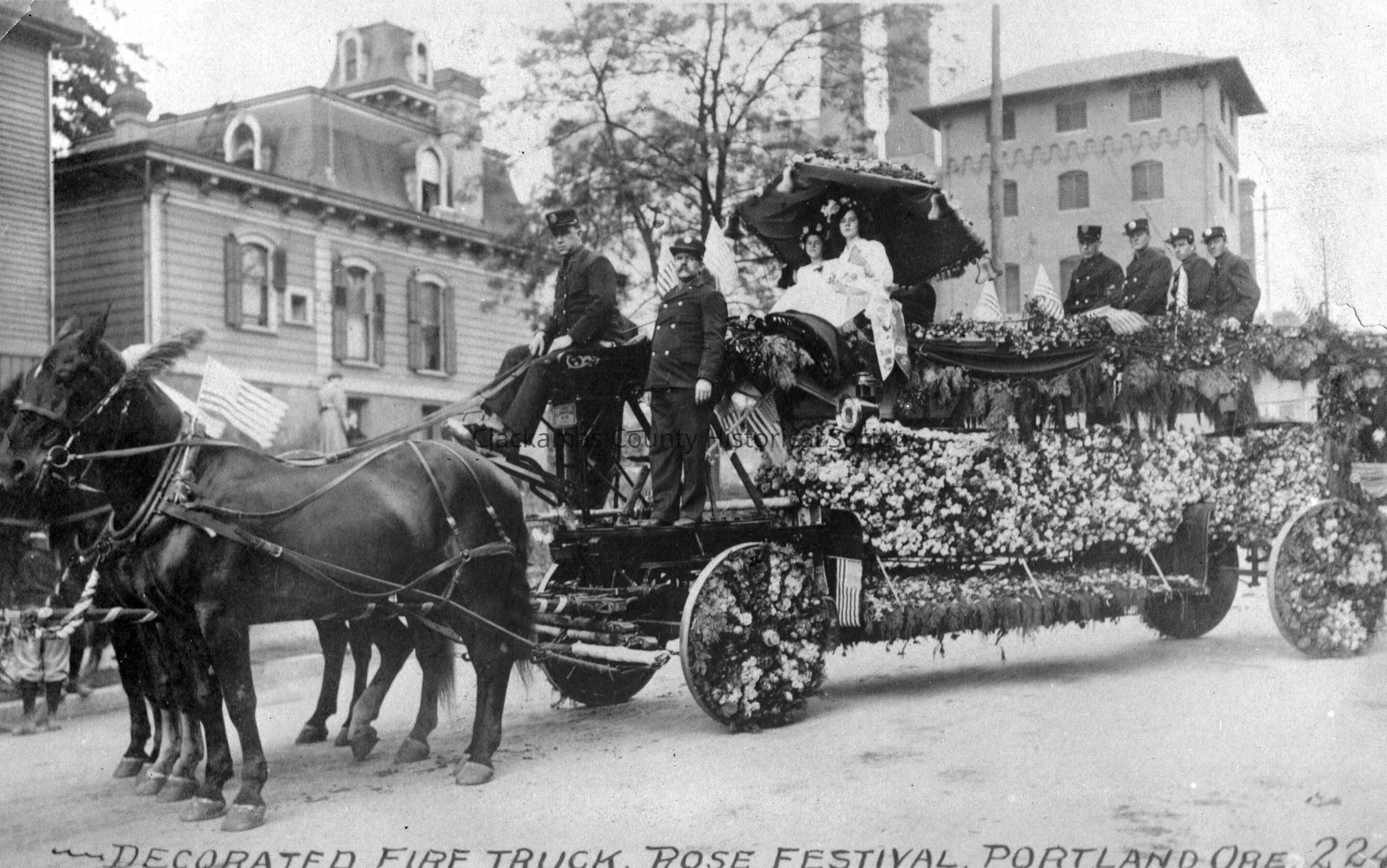 Portland Rose Festival Parade Fire Wagon with Horses Early 1900'sEntry/Object ID