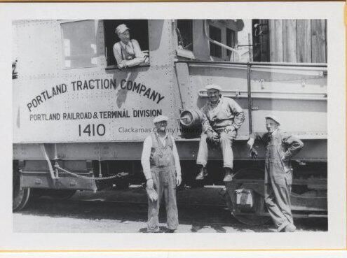 Portland Traction Co. Hawthorne Yards 1941 Fred Force in Cab, C.E. Scharbach, Jack Ownby Gradner # 409