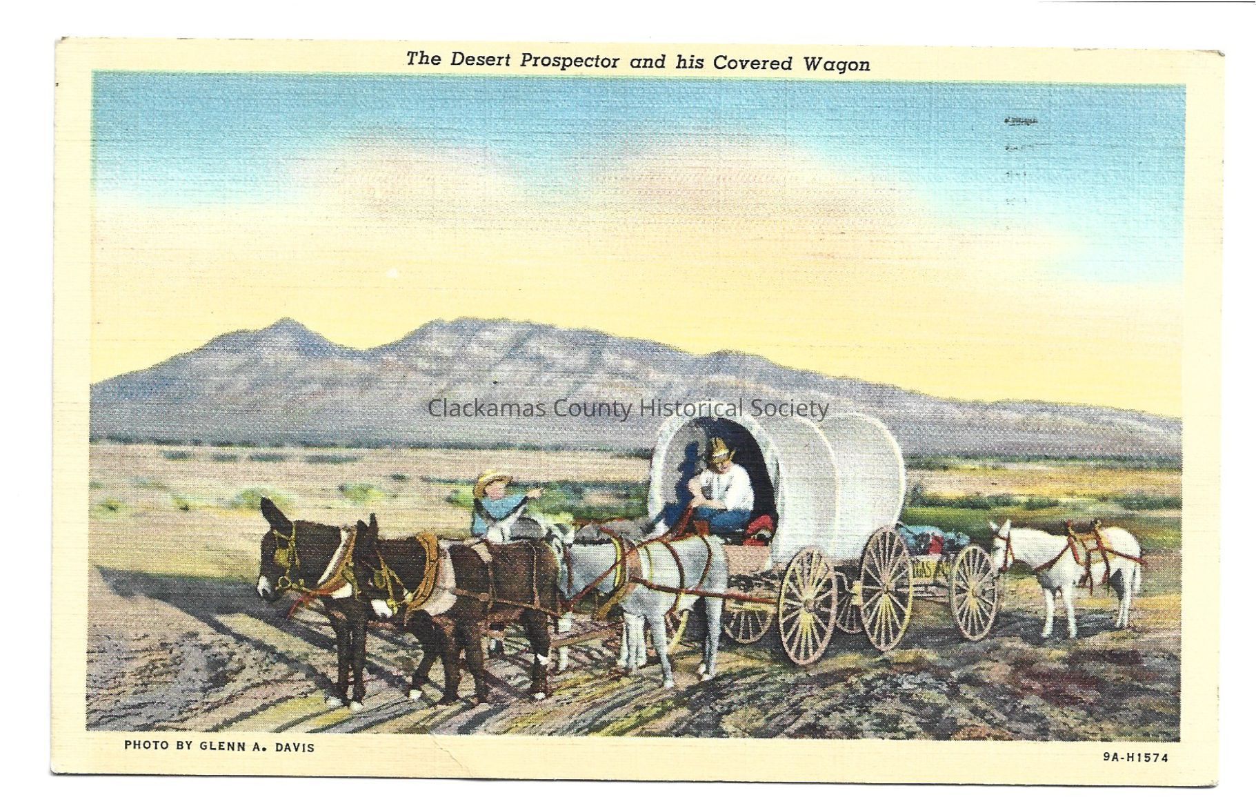 Front is a sketch of covered wagon with the heading: "The Desert Prospector and his Covered Wagon"