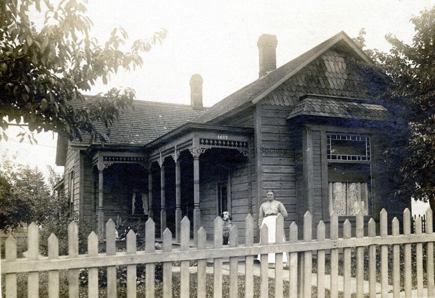 Priebe House, 1617 Seventh Street, Oregon City. No information is provided about the lady in the photo...or the dog.Made/Created