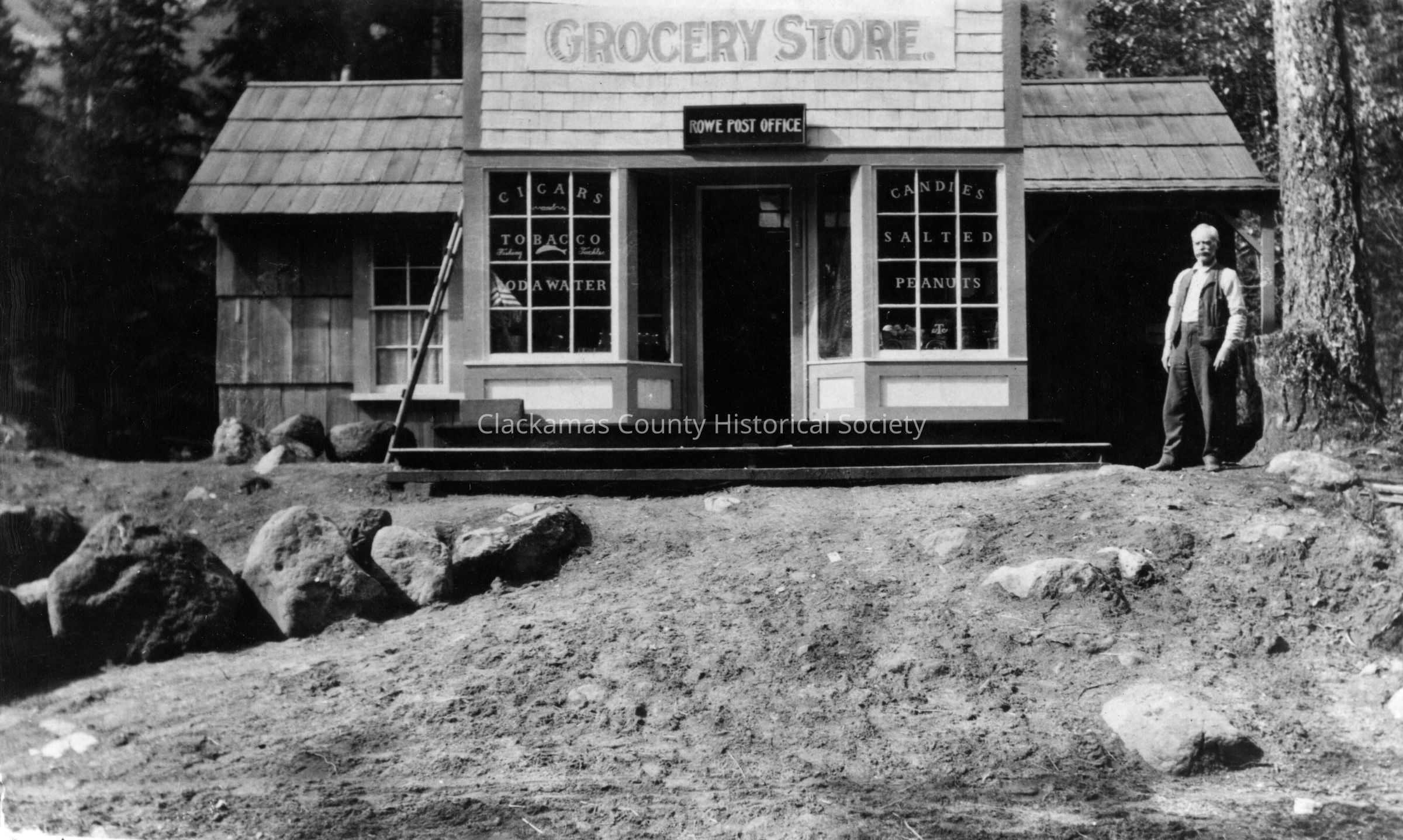 Rhodendron first store and "Dad" Miller. Store was at Rowe that became Rhododendron. Rowe Post Office.Made/Created