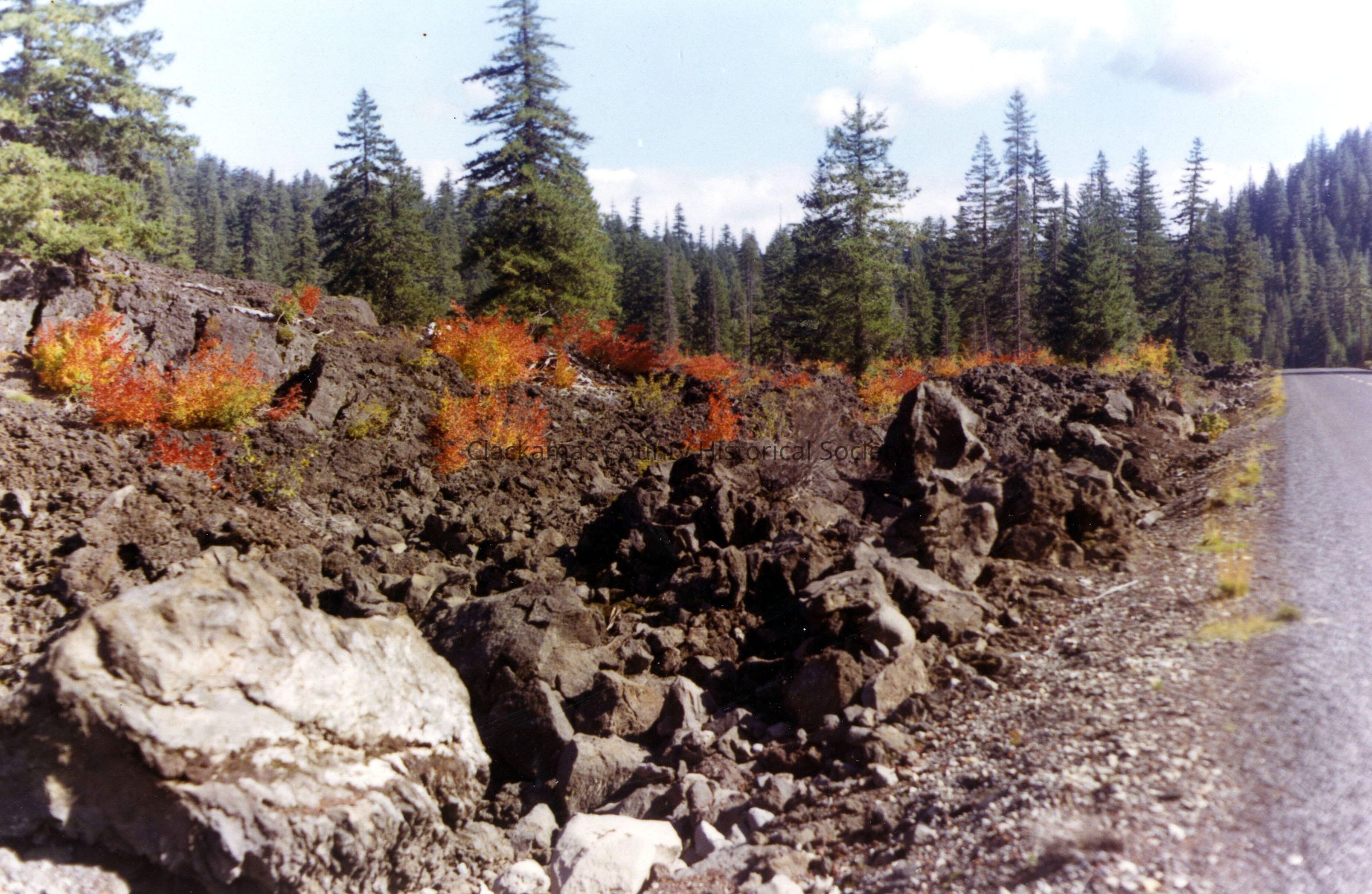 Roadside with rocks and shrubs, 1970.