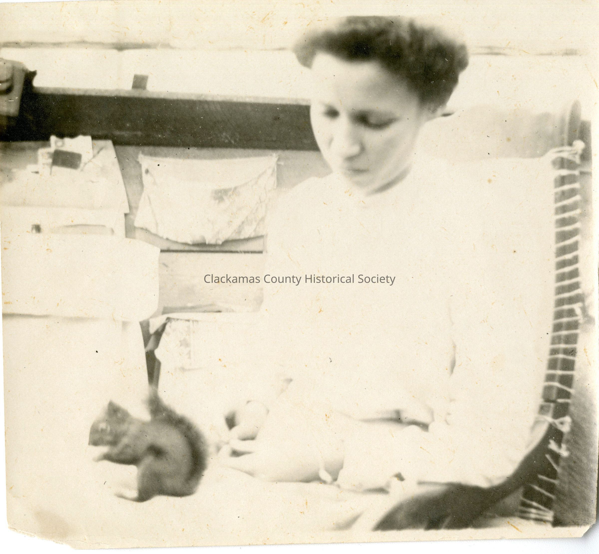 Jessie (Talbert) Ryckman with a squirrel on her lap