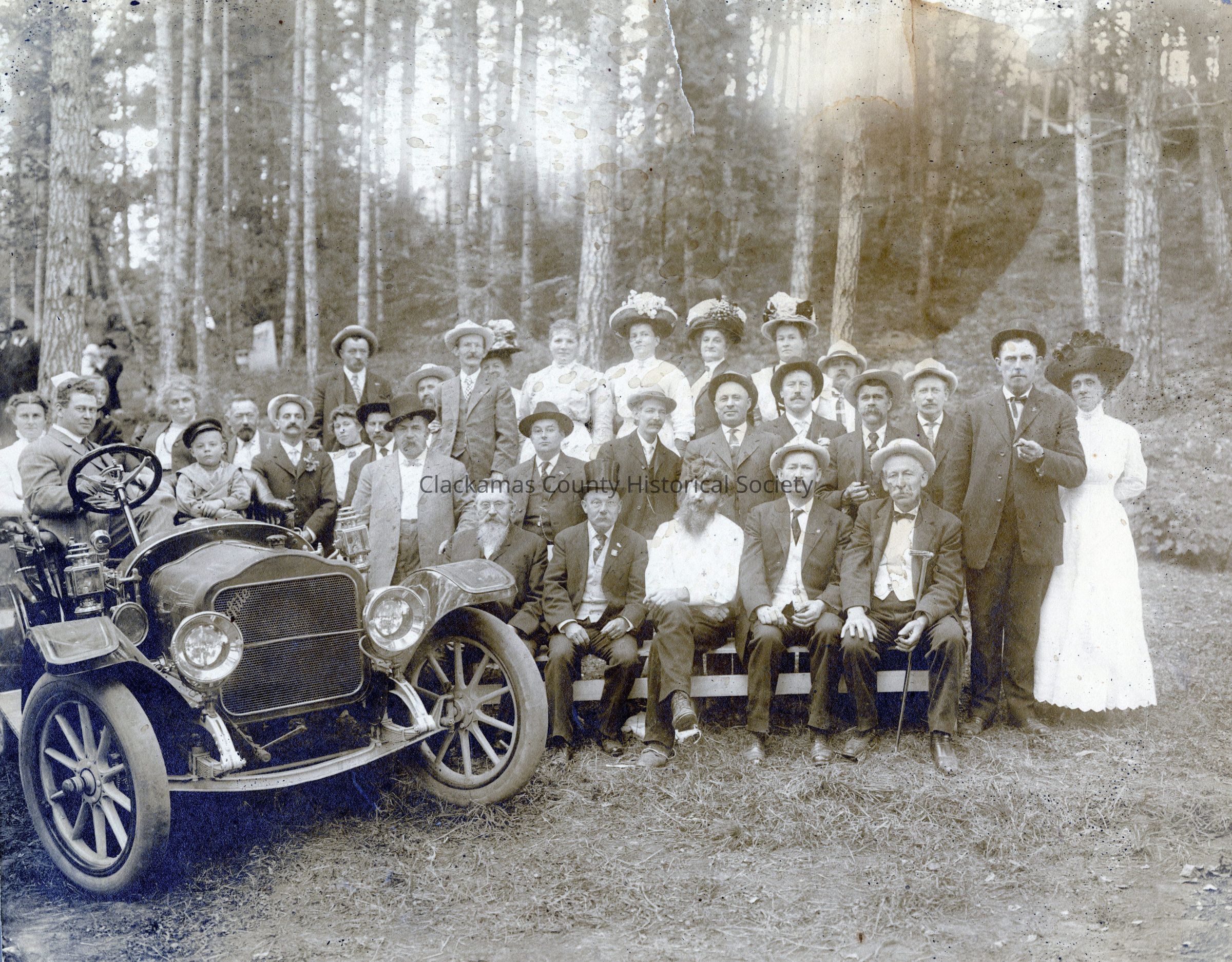 Group on Bleachers with automobile 1906 Gift by John Busch F.0375.005351 A