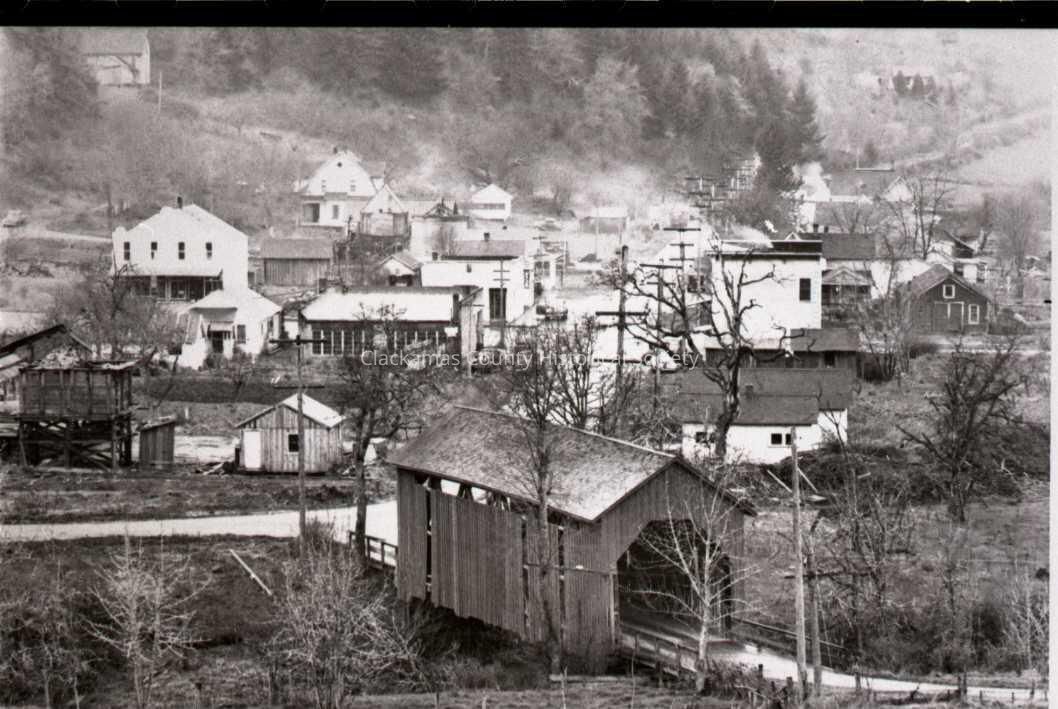 Nowlen Coveered Bridge in foreground, over Butte Creek.Made/Created