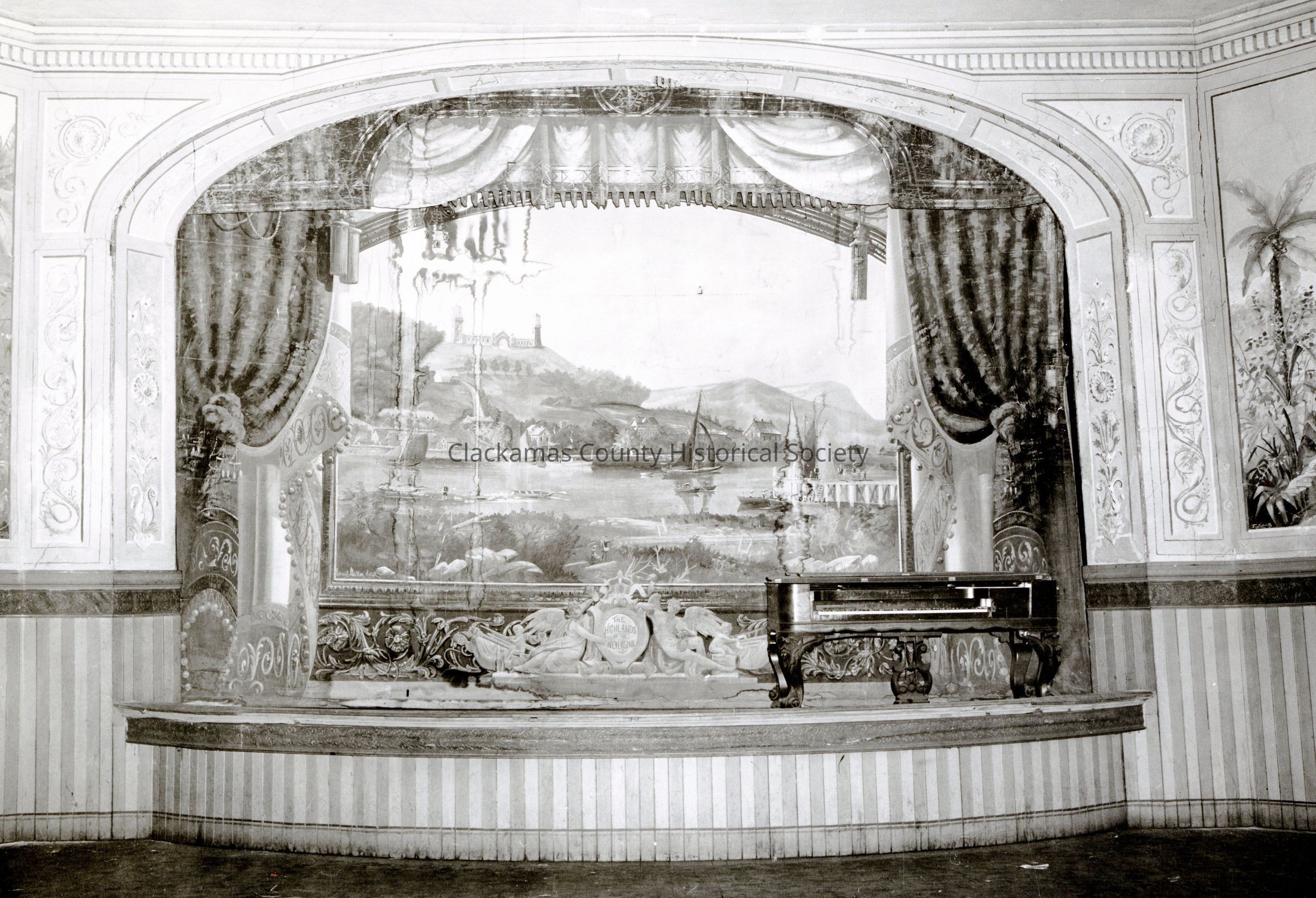 Shively Theater. Piano on stage. Oregon City. 1954.Made/Created